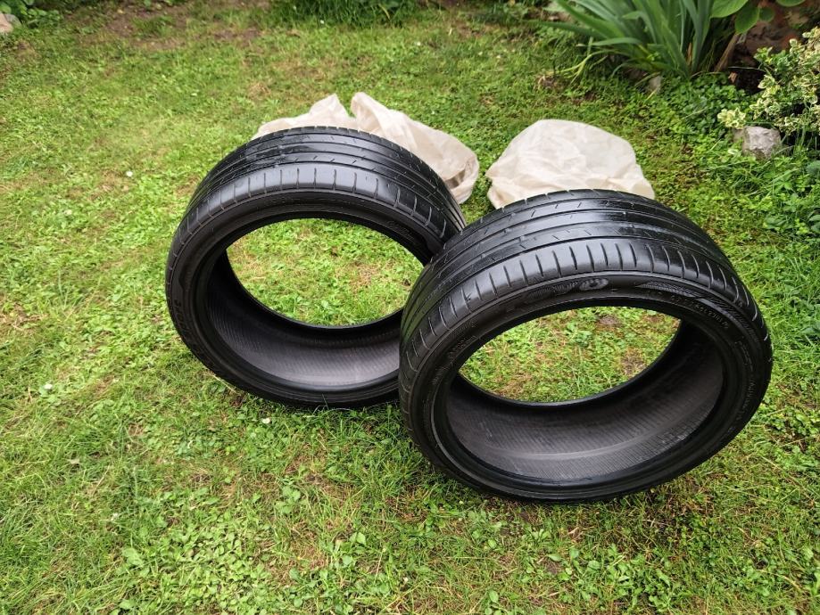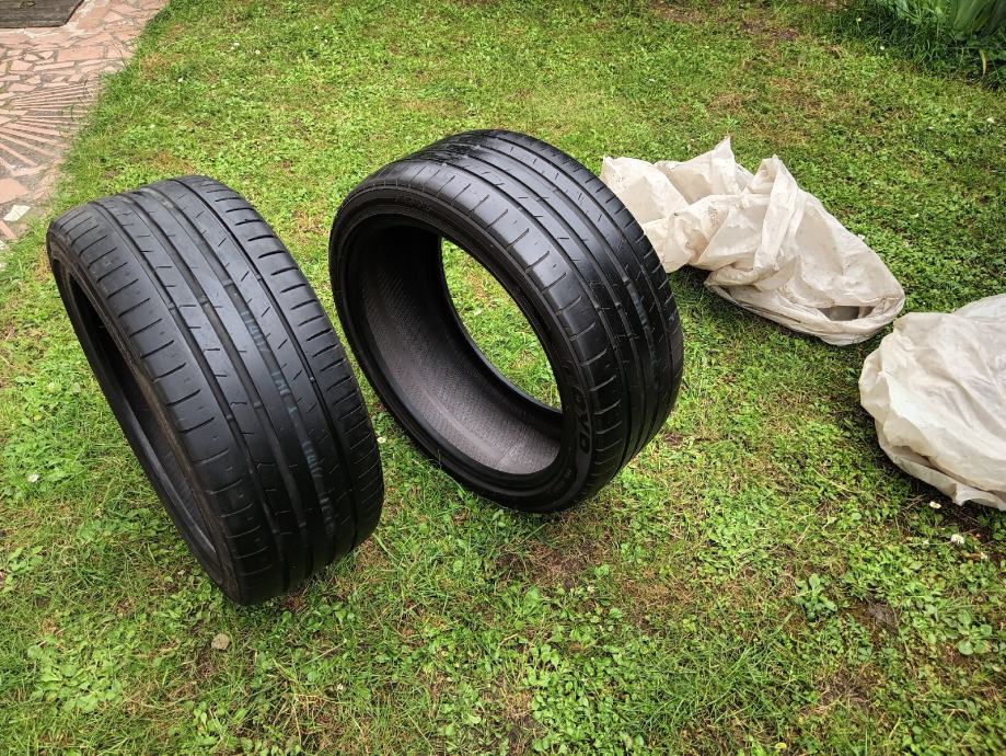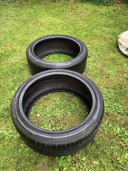 Prodajem japanske kvalitetne ljetne gume,marke TOYO PROXES SPORT,koje su ostale nakon prodaje auta. Gume su skladištenje,konzervirane i čuvane u garaži,na sebi nemaju nikakva oštećenja,nikada probušene niti krpane. Kupljene nove su koštale 145.€ po komadu-prodajem ih za samo 20.€ po komadu,ukupno 40.€ za oba dvije. Ne šaljem poštom, preuzimanje je osobno nakon pregleda guma. Mogućnost dostave na autocestu -naplatne kućice u Karlovcu.