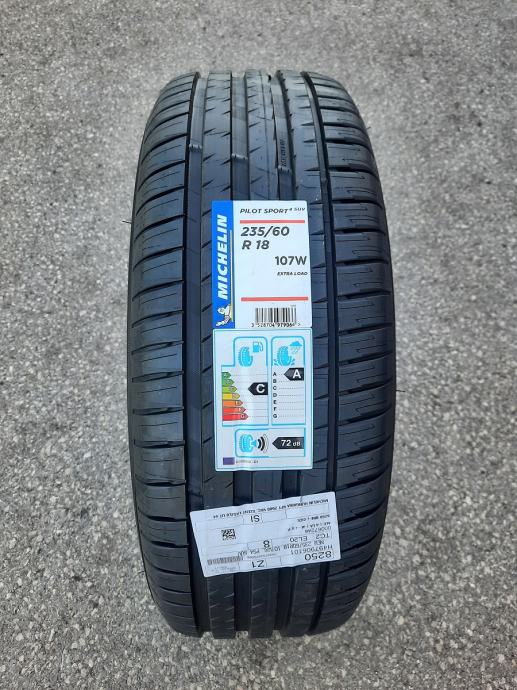 Nove ljetne gume Michelin Pilot Sport 4 SUV, dimenzije 235/60/18. Gume su nove s naljepnicama, nikad montirane na vozilo, svježi DOT. Mogućnost ugradnje. Cijena po komadu 167 eura.