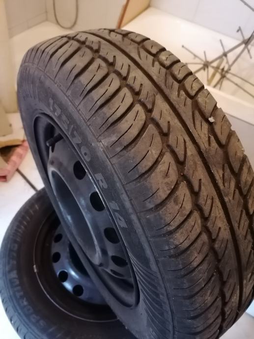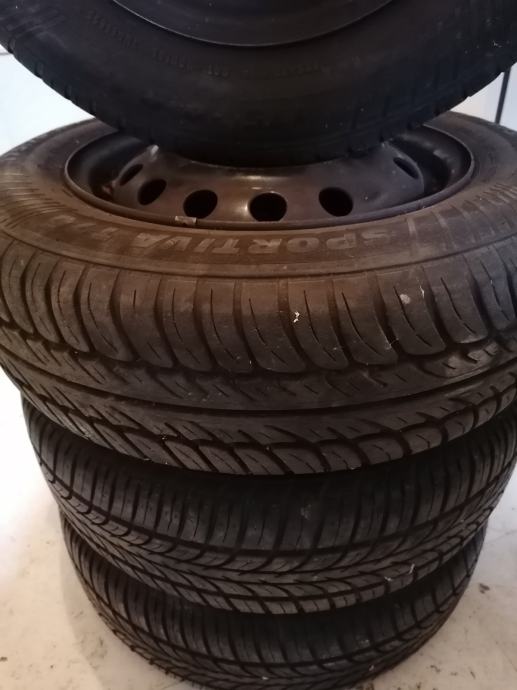 Gume za prodaju. Nokian NRT2. 4 godine uskladištene. skinute sa Opel Vectre. Felga 4 x 100 Ripne dobre. Gume su iz 2005 godine. Na slici su i dvije Sportiva gume sa felgama iz 2010 godine isto 4 godine uskladištene.