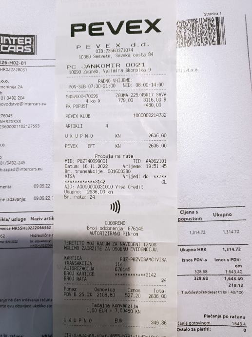 Kupljene jucer u Pewex-u racun plačene 2636 kn samo namontirane na auto danas.prodajem za 2200 kn.....