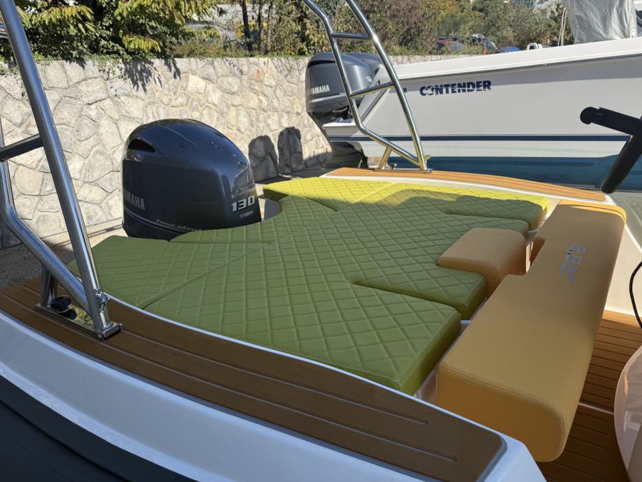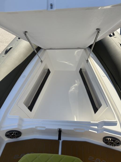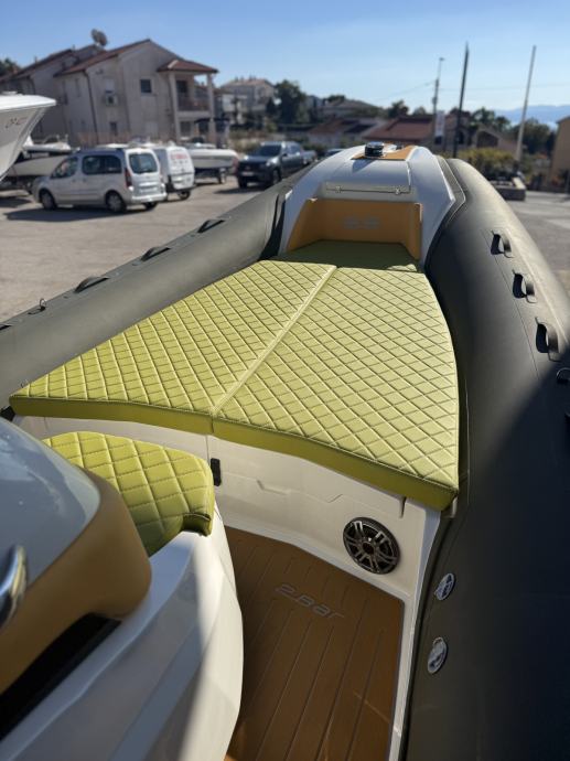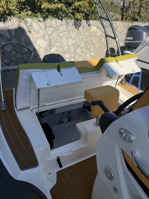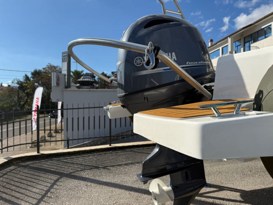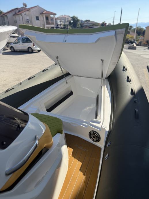 GRP konstrukcija trupa, ORCA HYPALON neoprenski tubusi, poseban uzorak tubusa Impression, Roll Bar po mjeri sa tendom, komplet jastuka, poseban uzorak madraca, integrirane GRP krmene platforme, tikovina od sintetičkog materijala, prednje sjedište na konzoli, teleskopsko sjedalo, krmeno sunčalište sa produženjem, preklopiv stražnji naslon sjedala, spremište u konzoli, pramčani spremnik, krmene ljestve od nehrđajućeg čelika, vjetrobransko staklo, konzola, volan, sajla volana M66, upravljačka ploča instrumenta, 12V utičnica, radio sa 2 zvučnika, električna ploča, prekidač baterije, kaljužna pumpa, električno vitlo sa inox sidrom i lancem 30m, LED navigacijska svijetla, kompas, sirena, bitve, krmene bitve za privez, ispusti u more iz kokpita, kutija za akumulator 80 AH, tuš na krmi sa tankom 45l