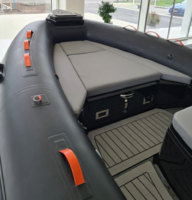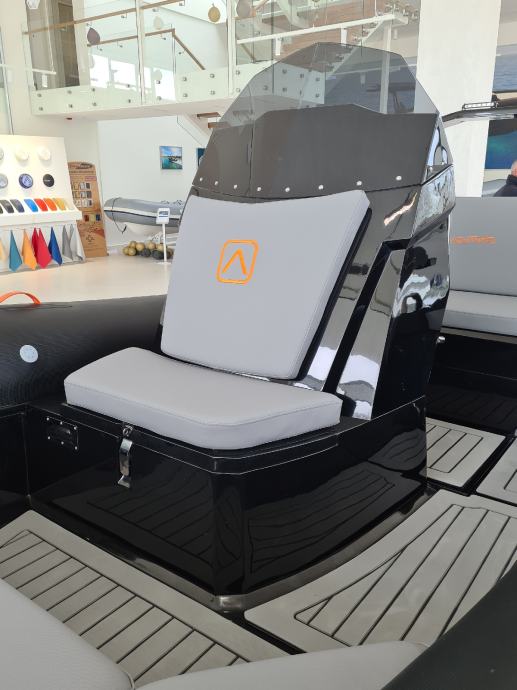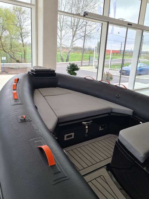 Karakterizira ga atraktivan dizajn koji asocira na brzinu, skladne dimenzije i prostor koji je maksimalno iskorišten. Ovaj model posebno ima preklopni naslon sjedala, koji cijeli stražnji dio pretvara u veliki ravni prostor za sunčanje, a ujedno omogućuje i lakši pristup platformi. Ispod stražnje strane nalaze se čak tri mjesta za odlaganje stvari: središnji veliki spremnik i dva bočna koja svojom funkcionalnošću i duljinom omogućuju odlaganje skija za vodu ili druge opreme za vodene sportove. Stražnja platforma dizajnirana je za lakši pristup brodu s pristaništa ili ulasku iz vode po ljestvama od nehrđajućeg čelika, koje se mogu izvući iz namjenskog prostora i lako staviti u pogon. Na upravljačkoj konzoli, uz standardne uređaje za mjerenje brzine, dubine, opreme i navigacijskog uređaja, primjećuje se i jedan detalj koji je prava rijetkost na brodovima ove klase: pretinac za pohranu osobnih stvari, poput mobitela i dokumenata.