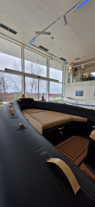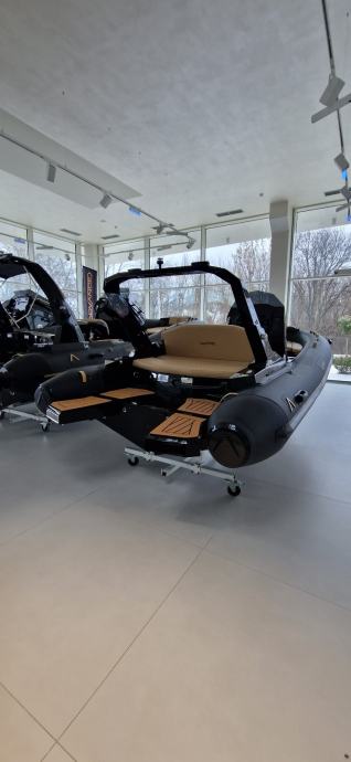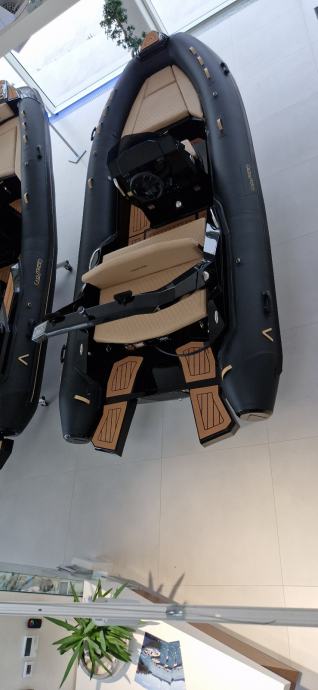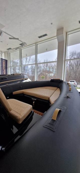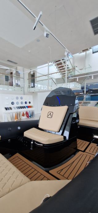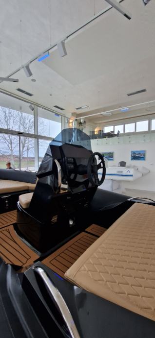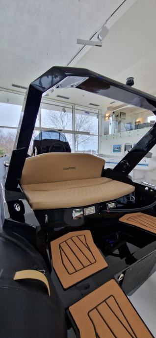Karakterizira ga atraktivan dizajn koji asocira na brzinu, skladne dimenzije i prostor koji je maksimalno iskorišten. Ovaj model posebno ima preklopni naslon sjedala, koji cijeli stražnji dio pretvara u veliki ravni prostor za sunčanje, a ujedno omogućuje i lakši pristup platformi. Ispod stražnje strane nalaze se čak tri mjesta za odlaganje stvari: središnji veliki spremnik i dva bočna koja svojom funkcionalnošću i duljinom omogućuju odlaganje skija za vodu ili druge opreme za vodene sportove. Stražnja platforma dizajnirana je za lakši pristup brodu s pristaništa ili ulasku iz vode po ljestvama od nehrđajućeg čelika, koje se mogu izvući iz namjenskog prostora i lako staviti u pogon. Na upravljačkoj konzoli, uz standardne uređaje za mjerenje brzine, dubine, opreme i navigacijskog uređaja, primjećuje se i jedan detalj koji je prava rijetkost na brodovima ove klase: pretinac za pohranu osobnih stvari, poput mobitela i dokumenata.