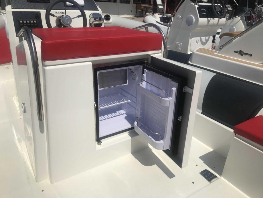 Plovilo se također može izgraditi s rasporedom sjedenja u obliku slova U na pramcu, a ne samo s ležajem kao što je prikazano na slici.