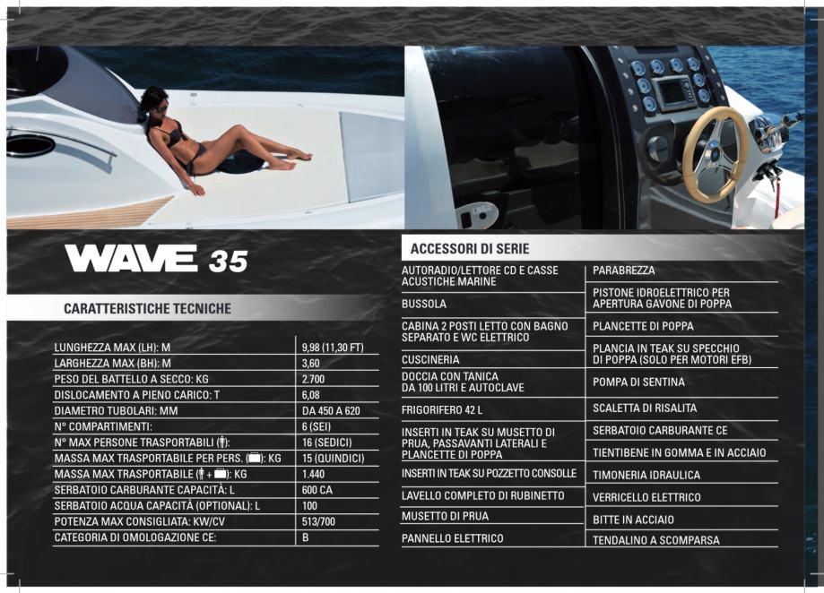Tako će kupnjom ovog gumenjaka Wave 35 pronaći luksuzne detalje koje ovo brodogradilište nudi svojim kupcima.