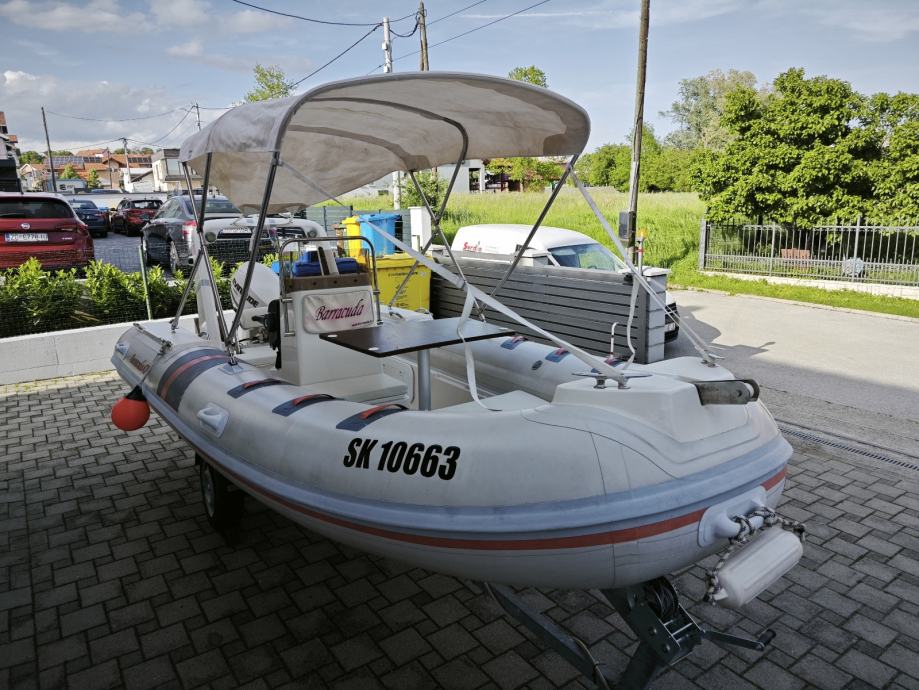 Barracuda 470 sa motorom Evinrude 40 e-tec, 2012.g. sve u jako dobrom stanju. Čamac nikada nije bio u renti, redovito servisiran, malo sati rada. U moru samo ljeti 15-20 dana ostalo na suhom. Novo obnovljeni jastuci i tenda. Spreman za sezonu.