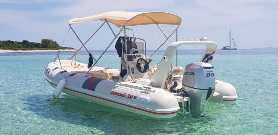 Prodajem očuvani gumenjak Barracuda 500 s motorom Honda 80KS 4T, puno opreme i prikolicom. Nikad krpan, oštećivan i sl., bez ikakvih skrivenim mana. Nikad u charteru, registriran na fizičku osobu! Prodajem ga jer se ne koristi.