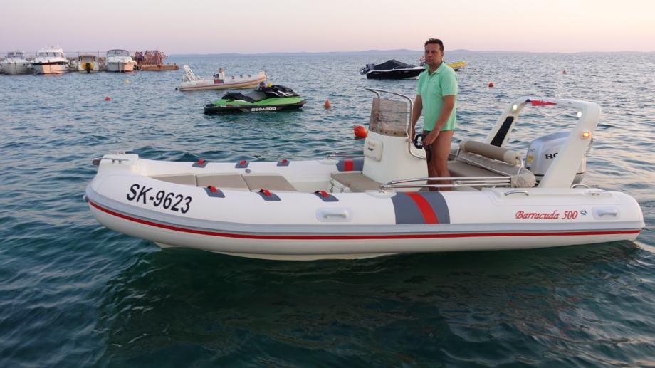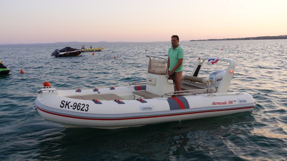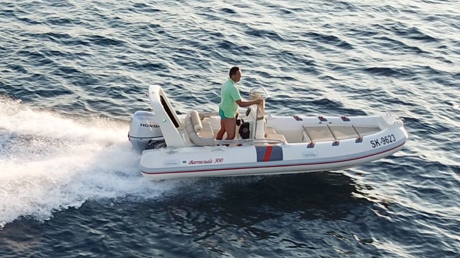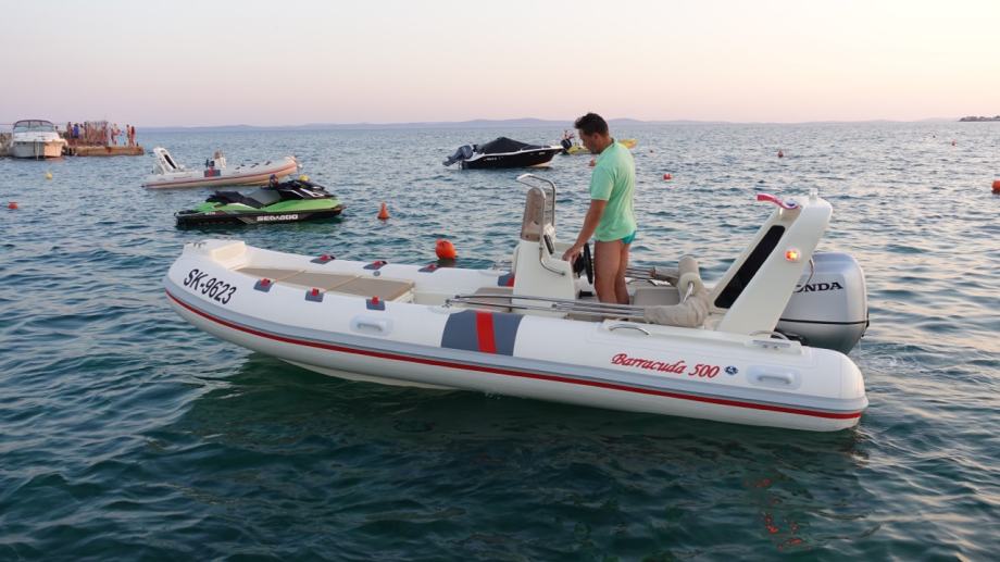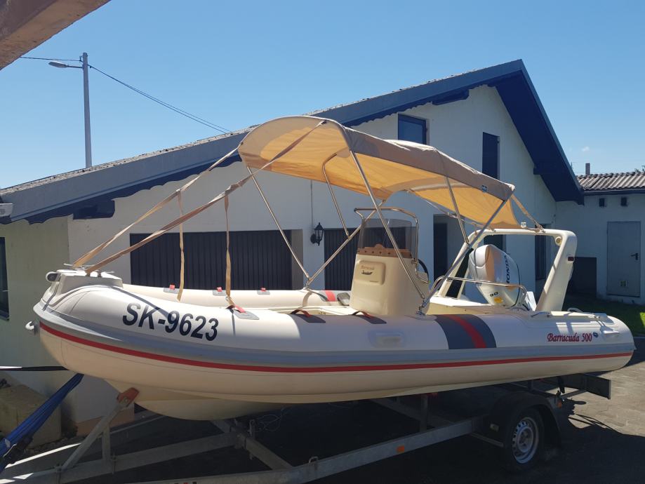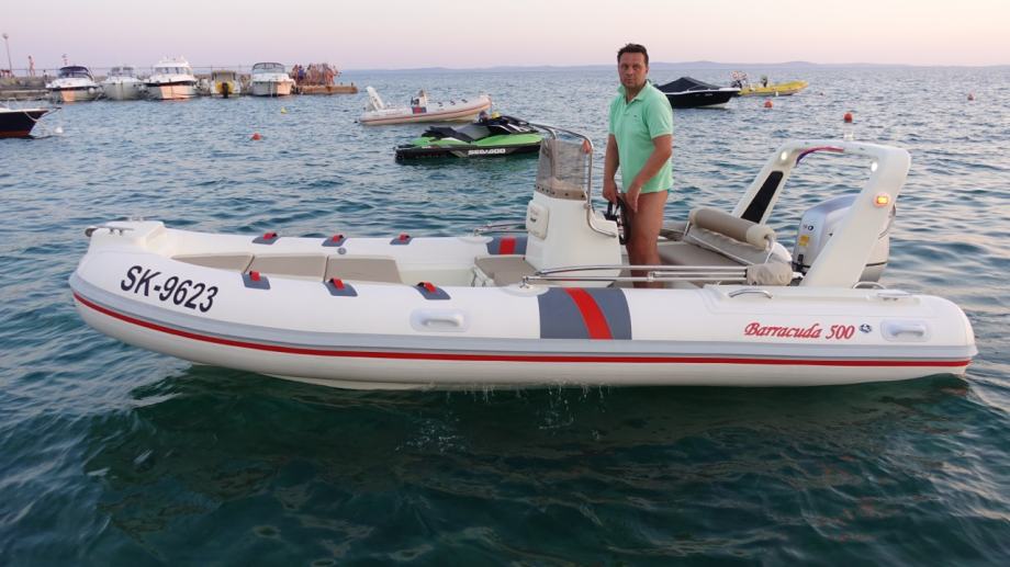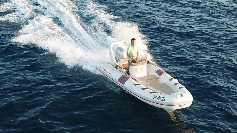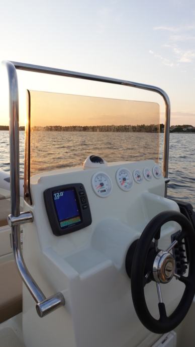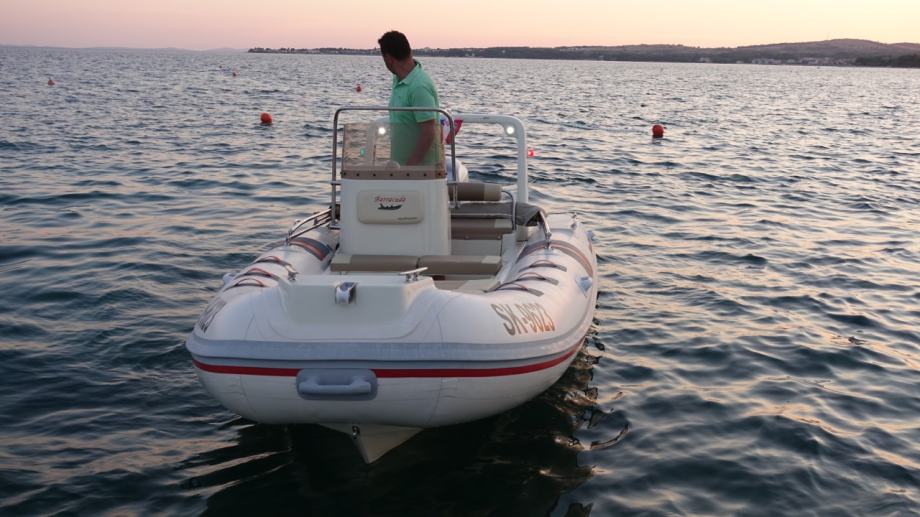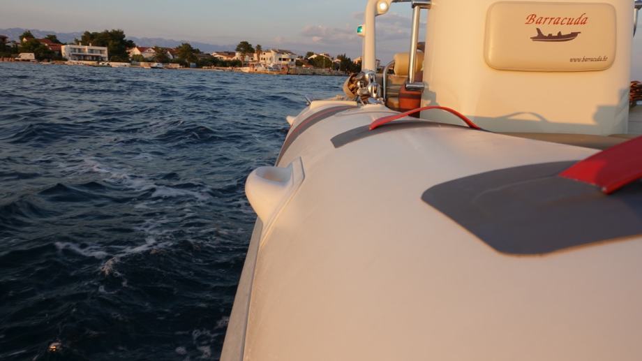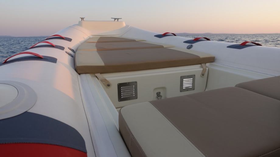 Kompletna oprema: komplet jastuka za sunčanje, roll-bar + LED rasvjeta, zimska cerada, navlaka za konzolu, GARMIN Echo 500c, tenda preko cijelog gumenjaka, kaljužna pumpa, baterija, spremnik goriva od 90l, tubusi od vrhunskog materijala (Hypalon ORCA 828), stepenice na krmenoj platformi, bočni nogostupi sa INOX rukohvatima i bitvama. Mogucnost i trailera po dogovoru. Gumenjak se može vidjeti u Zagrebu.