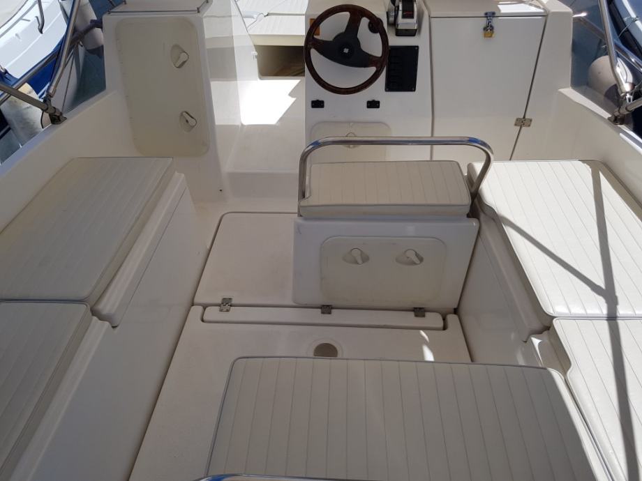 Prostrana kabina ima lezaj dimenzija 170 x 220 cm, te nekoliko zatvorenih spremista i polica, ispod i oko lezaja, kao i rasvjetu. Na palubi su dva velika tapecirana suncalista ( pramacno i krmeno), koja takoder mogu posluziti i za spavanje (pod ceradom).
