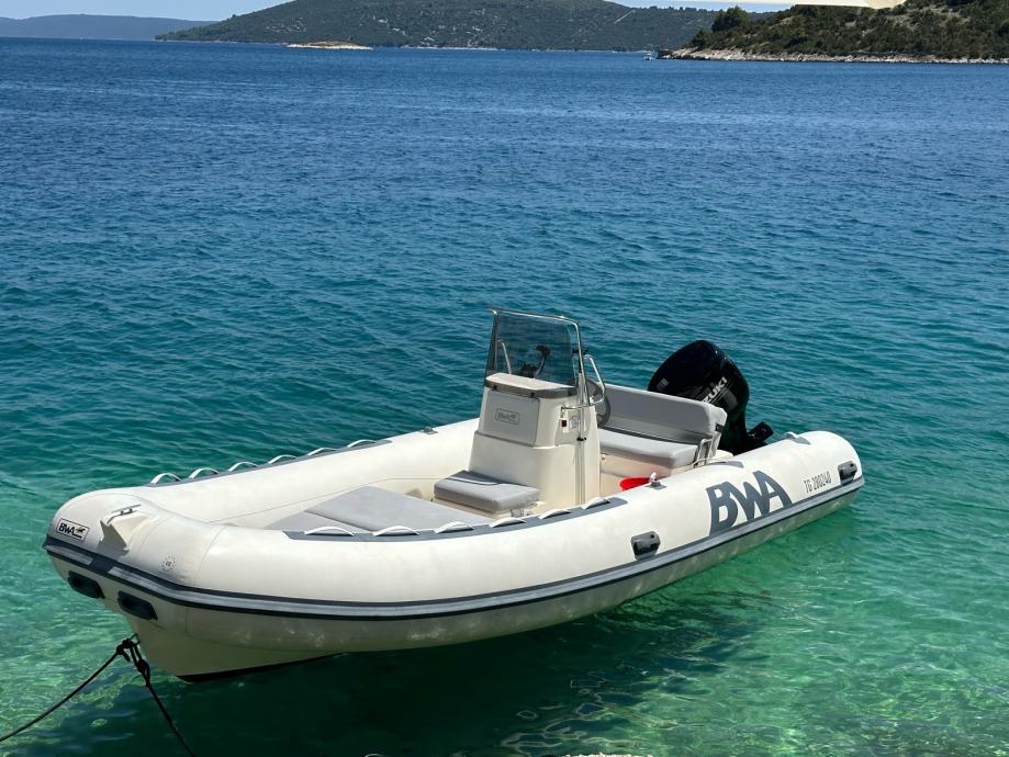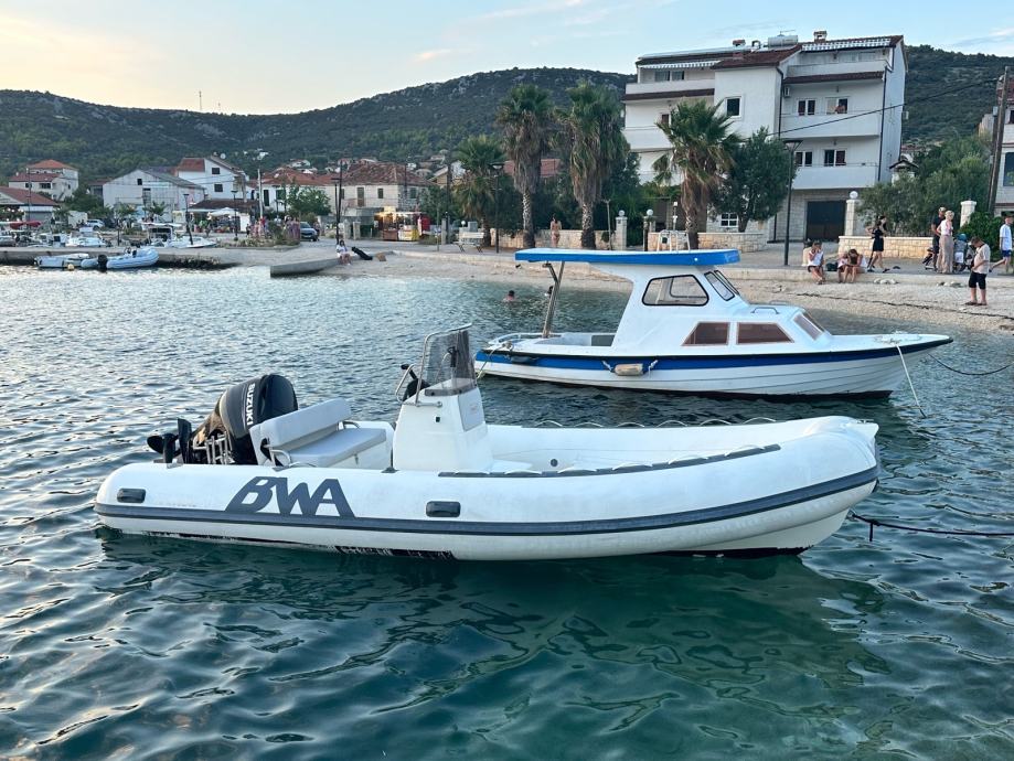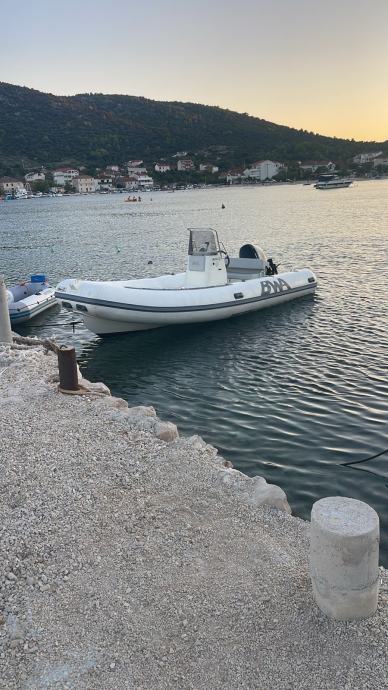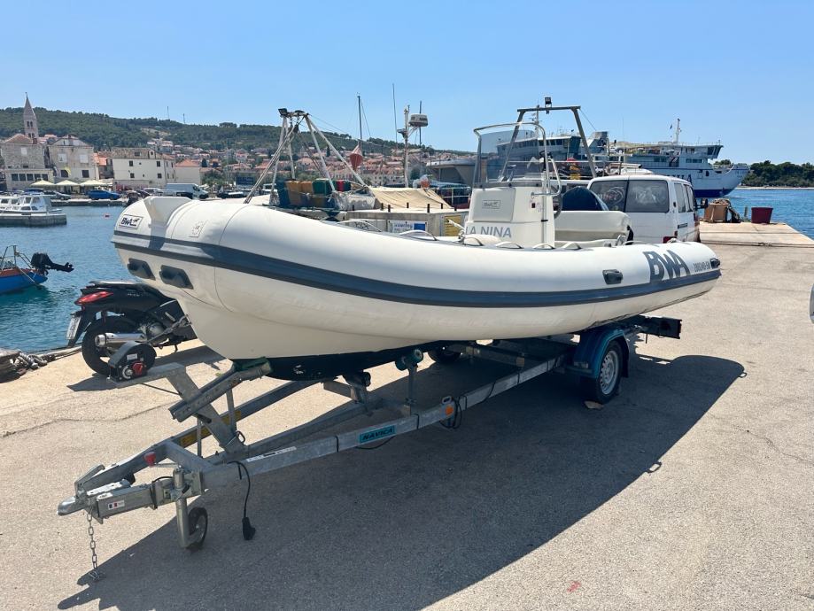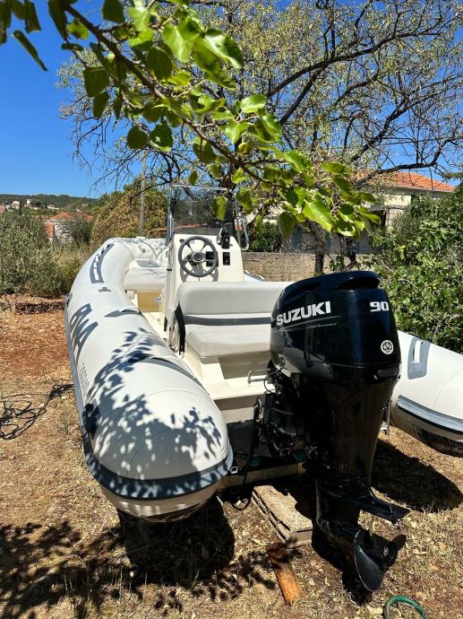 Gumenjak je kao nov, korišten u privatne svrhe, Suzuki DF90A (100 ks), 4 taktni, 100 sati, uredno servisiran, novi akomulator 115Ah, novi jastuci, nova propela, novi poklopci, bimini tenda sa novim gurtnama, novi konopi, novi bokobrani, trajler uključen u cijenu, inox ljestve…