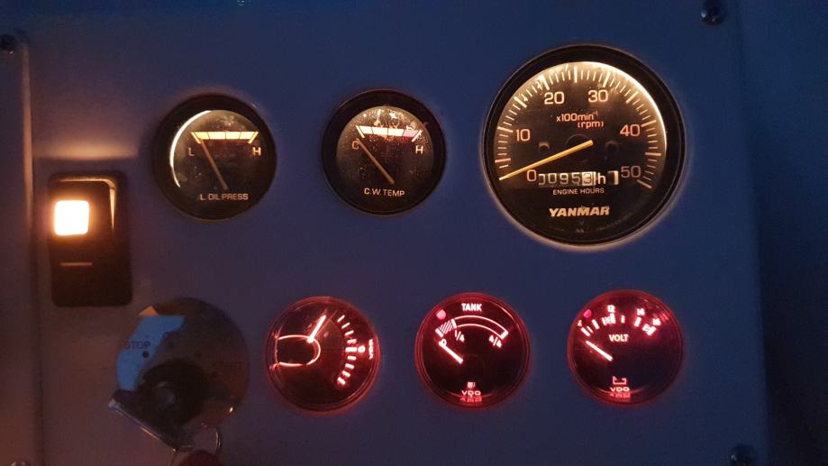pouzdani Yanmar turbo diesel motor koji pri brzini od 25 nm troši 7 litara diesela na sat.Tvornički ugrađeni rezervar za naftu - 100 litara inox.