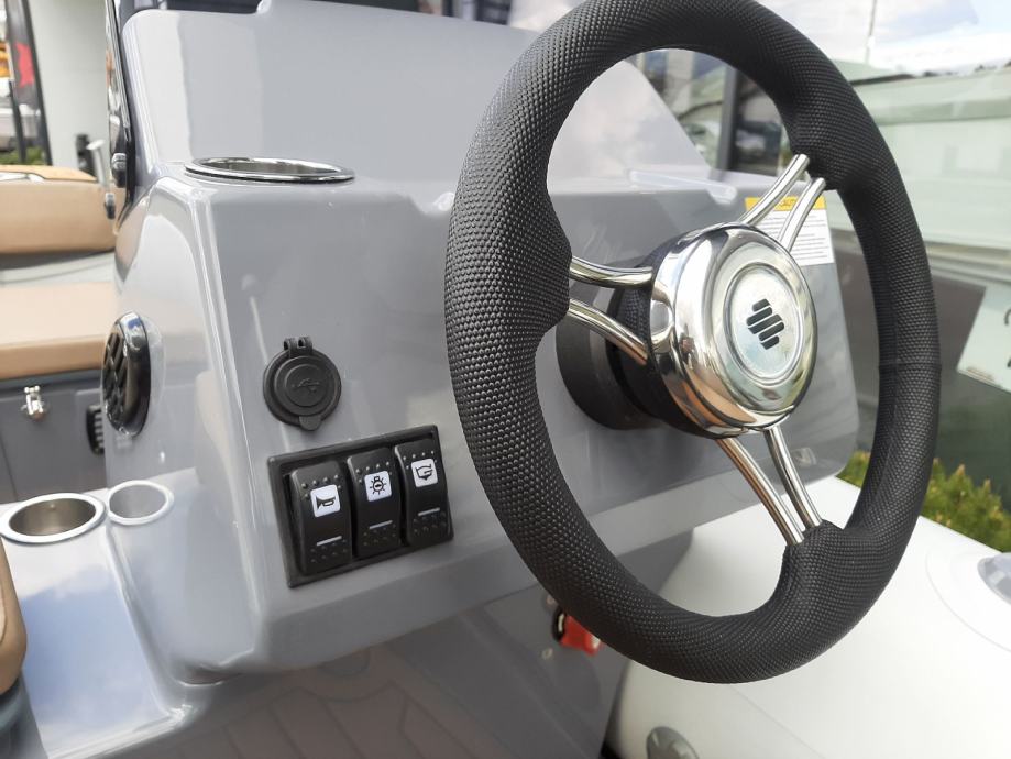 Elegantnija, masivnija... ali najvažnije - praktičnija. Konzola omogućuje ugradnju navigacije i mjerača za motor, iako plovilo pripada klasi tendera. Konzolu možemo opremiti sportskim kormilom GRAND i ugradnom ručicom, gdje je cijeli spoj s motorom nevidljiv, već je montiran ispod konzole.