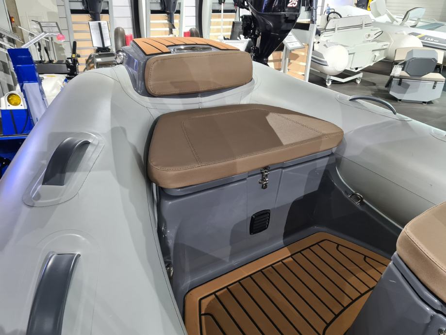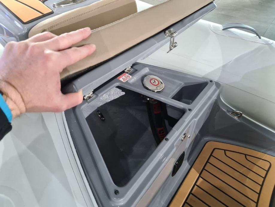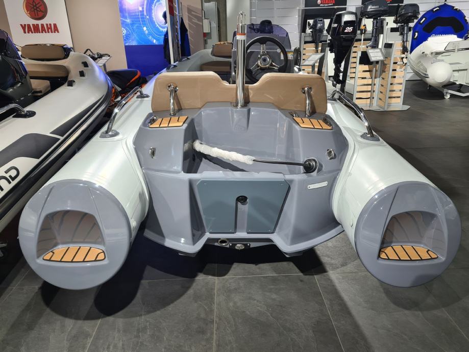 Pramac broda opremljen je prednjom platformom, sidrištem, bočnim navigacijskim svjetlima i završava s udobnim sjedalom od SILVERTEX materijala koji propušta vodu i brzo osuši tkanine na brodu. Kao što smo već spomenuli, dodatno bočno sjedalo nudi dodatni pretinac za pohranu i ima ugrađene držače za čaše. Pored glavne konzole nalazi se INOX držač, a tubusi su opremljeni ogradama od istog materijala radi dodatne sigurnosti putnika. Glavna klupa je, unatoč ograničenom prostoru, široka, ispod nje nudi velik prostor za pohranu predmeta, cerade, obavezne stvari za brod, itd. Prednja strana klupe također nudi mogućnost montaže dva AUDIO zvučnika, koji će sigurno obogatiti iskustvo tijekom plovidbe. Krmu broda završava dva koraka, što olakšava prijelaz iz stražnjeg dijela u središnji prostor. Ako ste zaljubljenik u adrenalinske sportove ili želite uživati u vodenim sportovima s obitelji ili prijateljima, brigu o tome preuzima drog za vuču, koji je pozicioniran na sredini krme. Stražnji tubusi se zaključuju s ugrađenim stepenicama od poliestera. To pruža prednost lakšeg ulaska iz vode i pomaže u većoj stabilnosti broda pri plovidbi.