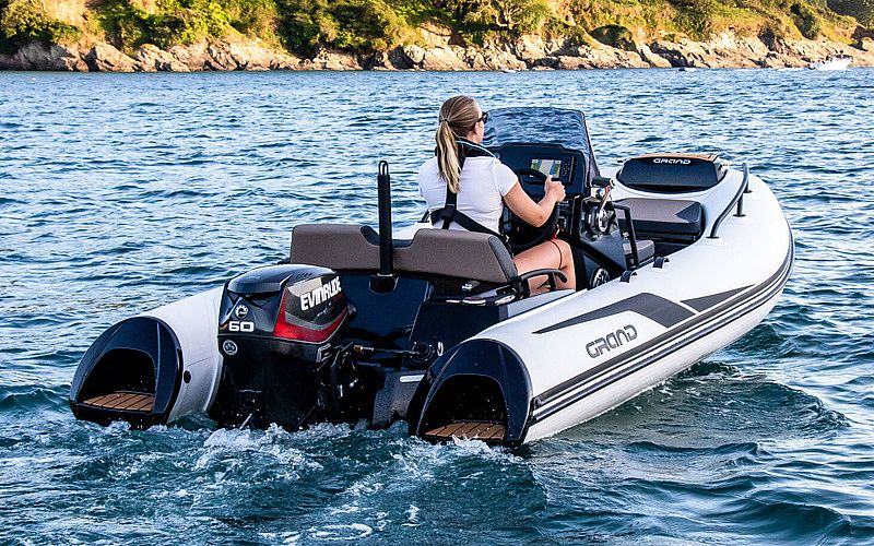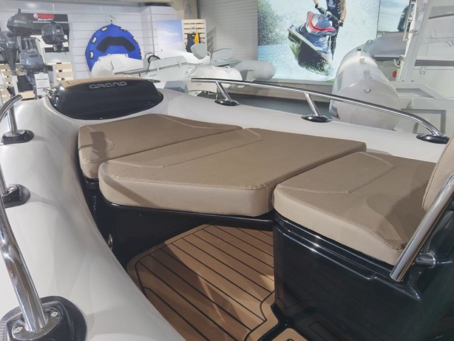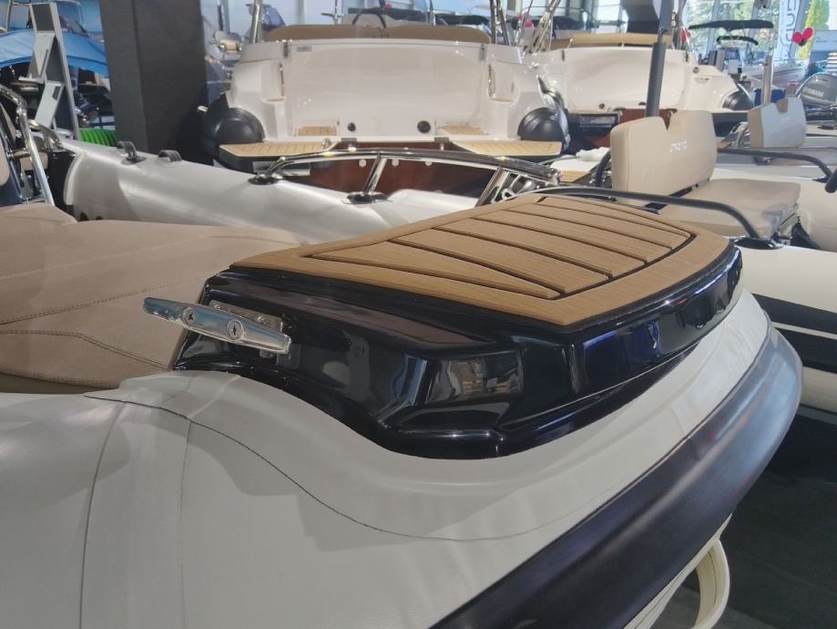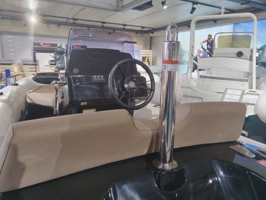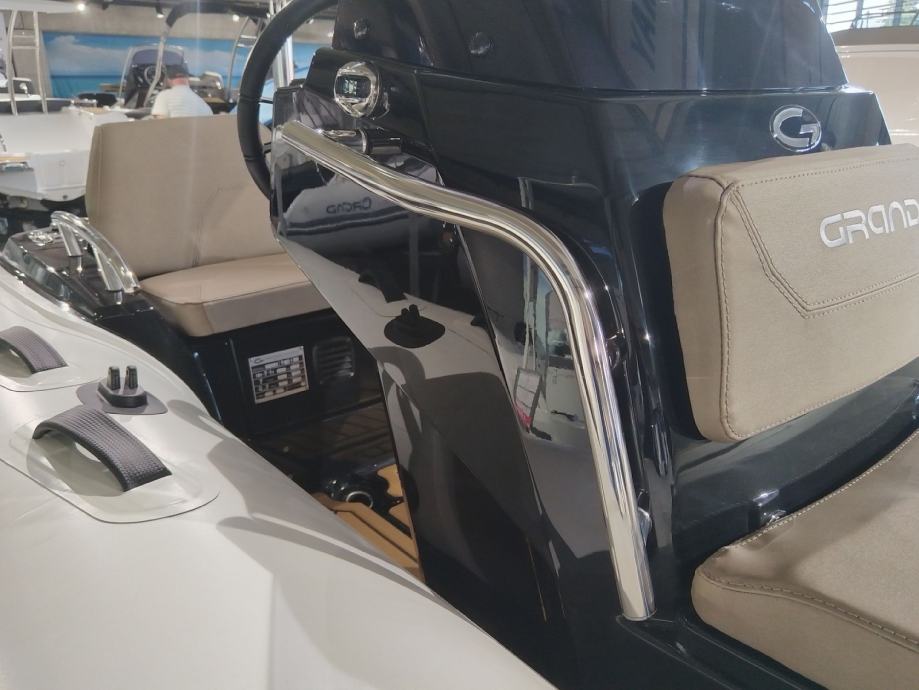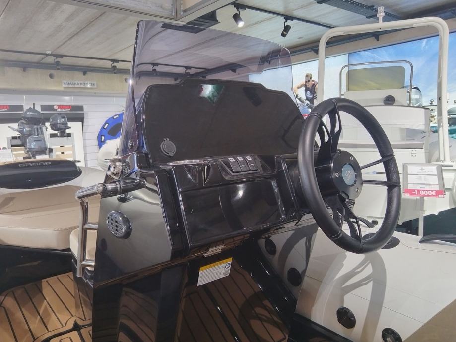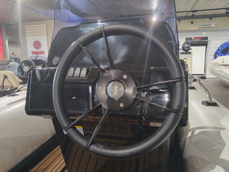 Elegantnejša, masivnejša … vendar najbolj pomembno – bolj praktična. Konzola daje možnost, čeprav spada plovilo v razred tenderjev, vgradnjo navigacije in števcev za motor. Konzolo lahko opremimo z športnim volanom GRAND in vgradno ročico, pri kateri vsa povezava z motorjem ni vidna, ampak je montirana pod konzolo.