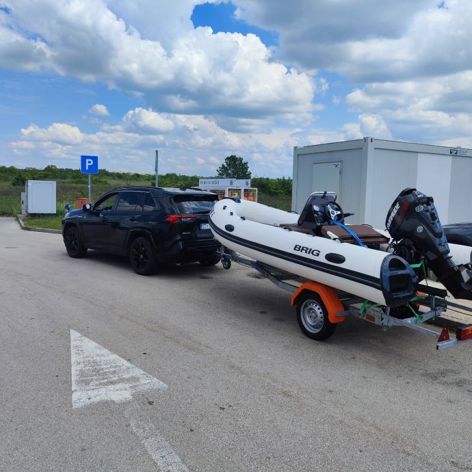 Prikolica je također 2020. godište te se prodaje u kompletu s gumenjakom i motorom.