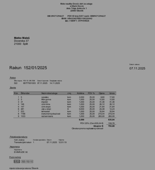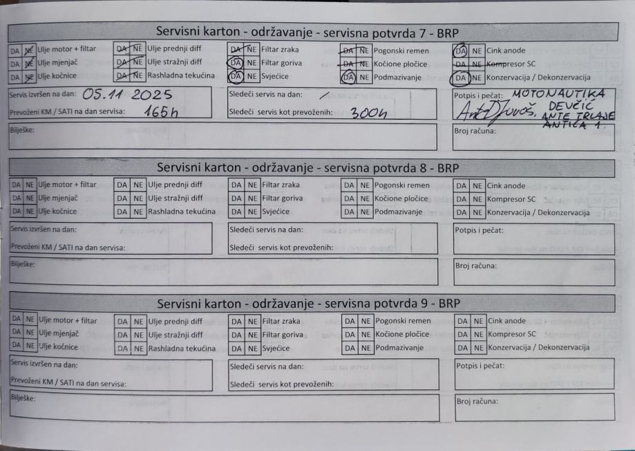 Zadnji veliki servis i konzerviranje napravljeno u studenom, račun i detalji u privitku.