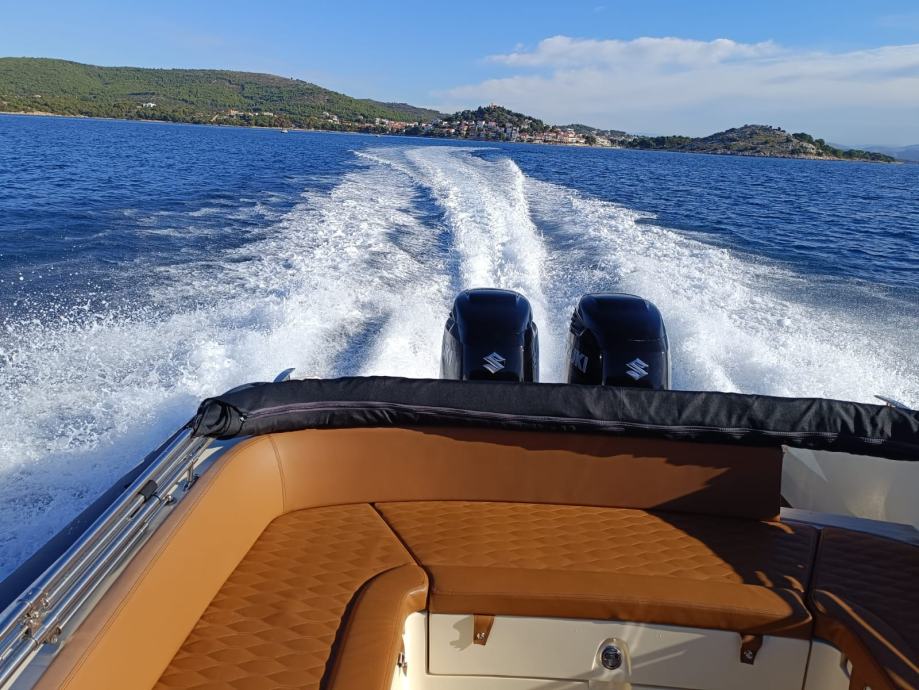 Gumenjak se nalazi u Tribunju i trenutno je na suhom vezu gdje se može pogledati. Ukoliko je kupac želi može se spustiti u more i napraviti testna vožnja (trošak spuštanja gumenjaka u more snosi kupac)!