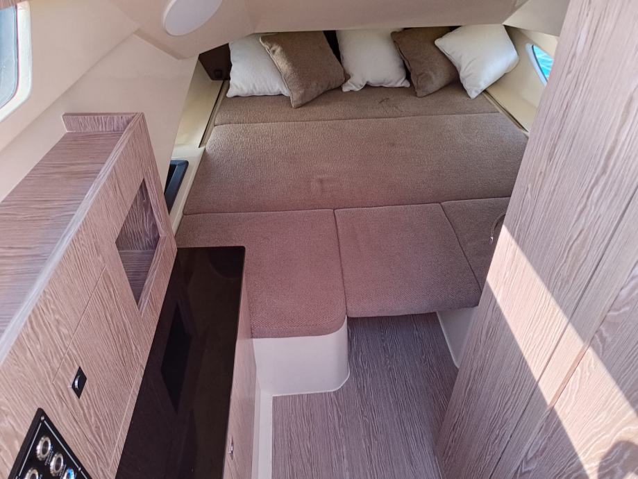 Unutarnja visina kabine jamči udobnost, dok prostrani bračni krevet nudi mogućnost potpunog uživanja na moru te komfor zahvaljujući odvojenoj kupaonici.