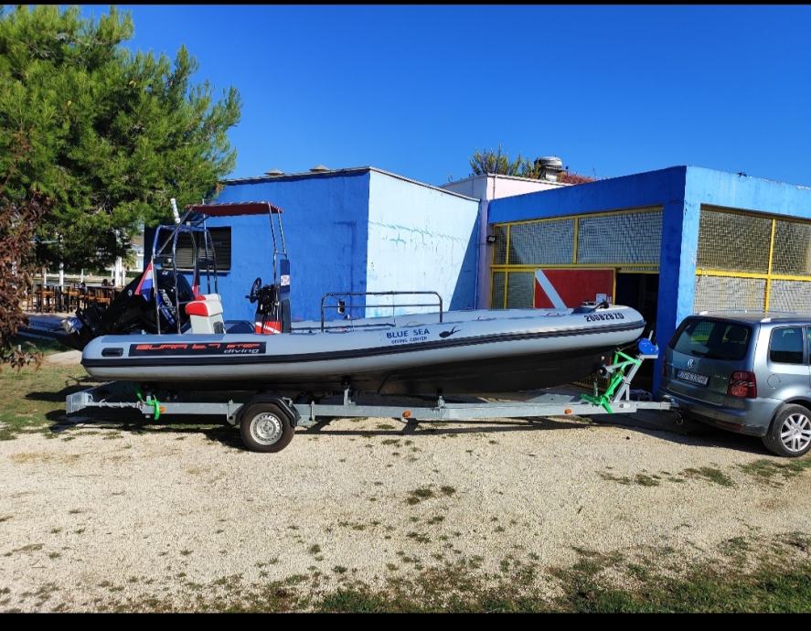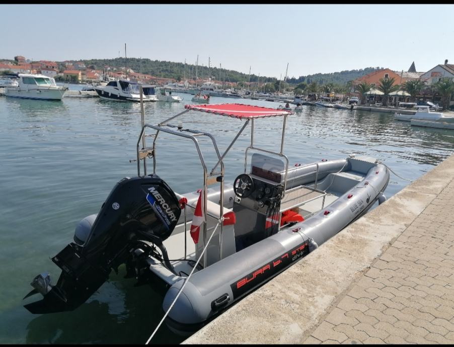 Prodaje se gumenjak Bura 6.7 step / 2020 godina sa Mercury 115 Sea Pro (jači motor)/cca 700 radnih sati održavan od prvog dana u ovlaštenom servisu KW nautik Zadar(digitalni zapis),registriran u gospodarske svrhe i korišten kao gumenjak za ronjenje,zbog oblika trupa izuzetno mala potrošnja i savršen na moru,registriran za 12 osoba,upravo promijenjena pumpa volana,hidraulični cilindar i komplet cijevi(sve plaćeno 2000 eur),Radio bluetooth sa zvučnicima,original cerada,ronilačke ljestve sa bočne strane,T-top...Trenutno na suhom vezu,prodaje se bez stalka za boce znači prazan trup sa puno mjesta na koja se može staviti i jockey sjedala-mogućnost kupnje 6 sjedala sa slike uz brod kao i trailera(2024 god,reg na 750 kg ali osovina nosi 1300 kg) sa slike ako kupac želi...Kontak telefon/whatsapp 091/1234-465