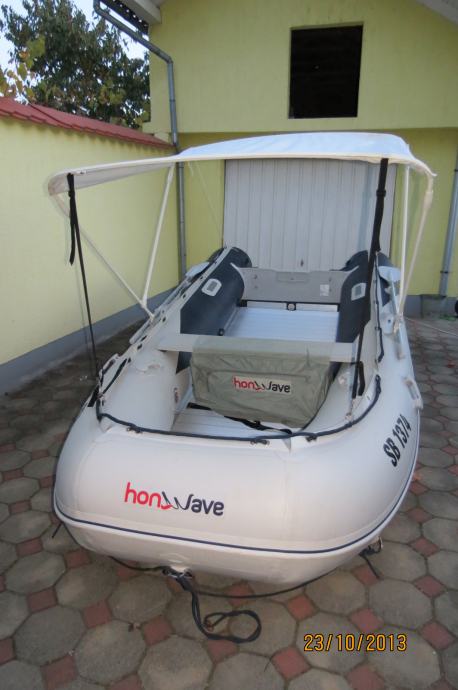 Prodajem gumenjak Honda T-40 trajno registriran, sa sklopivim aluminijskim podnicama, motorom Honda 20 bf, tendom, torbama, kotačima na krmenom zrcalu, te ostalim priborom. Sve u kompletu kupljeno u 12. mj. 2011. godine. Sve skupa nema niti 20 radnih sati