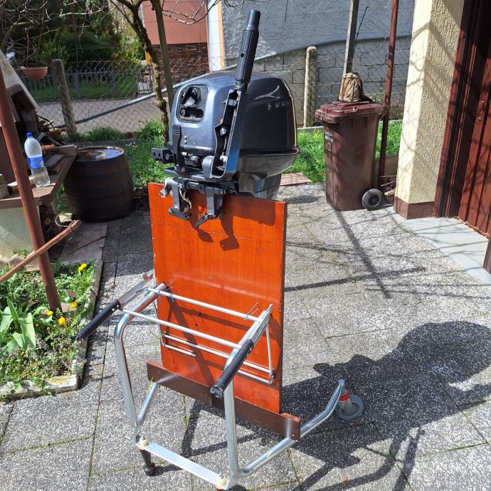 Motor stoji na stalku u mojoj garaži (kao i čamac).