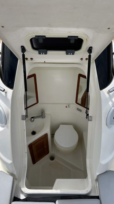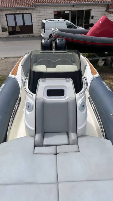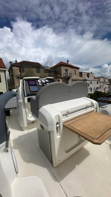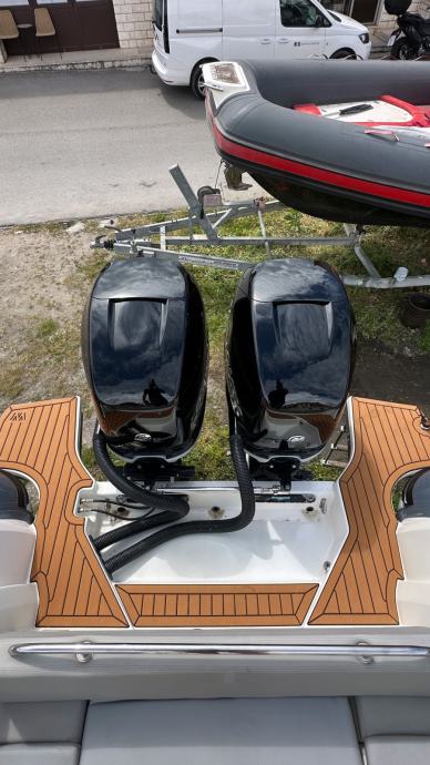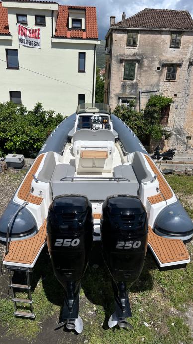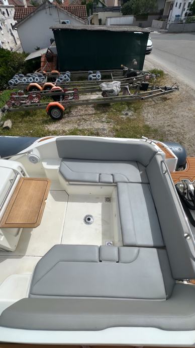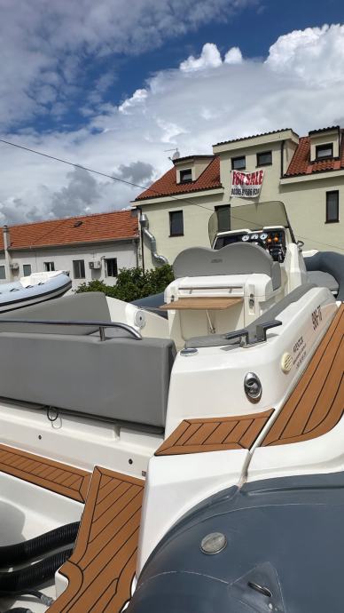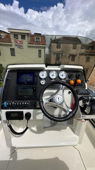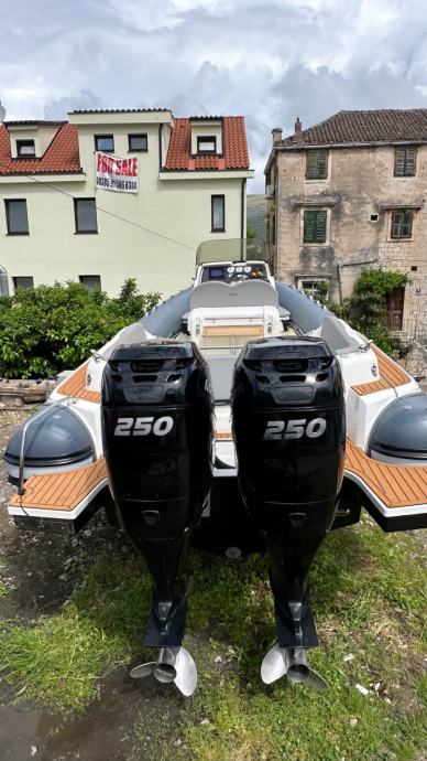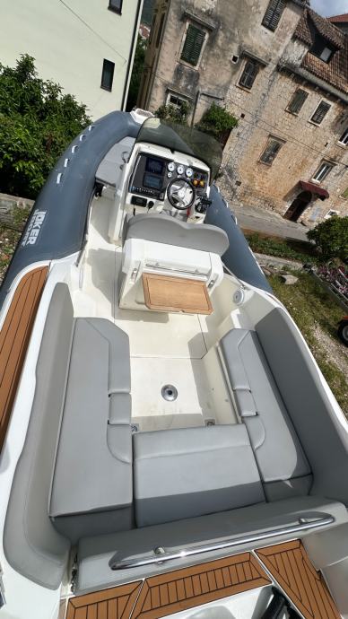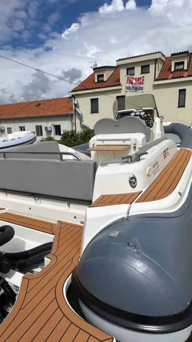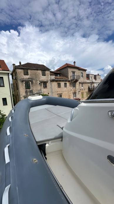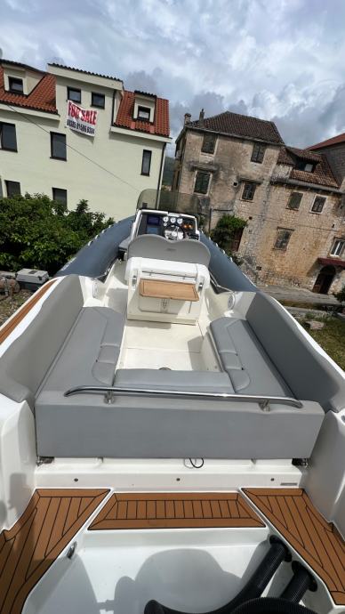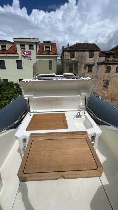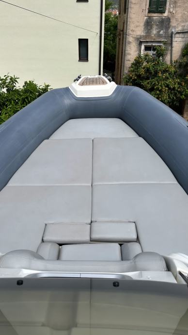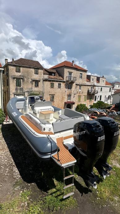 Na prodaju naš gumenjak , 2017 godište , 3 godine korišten kao demo brod na sajmovima , zatim stavljen u more kao premium brod za vip goste . Brod u sustavu PDV-a . Sva povijest od prvog dana dostupna . Brod ima full opremu . Inox Tenda za sunce , Inox tank goriva 400 lit , tank vode 120 l , 3 pumpe vode , jedna na krmi kao tuš , jedna u kuhinji kao sudoper te jedna u wc kabini . Wc kompletni električni sa crnim tankom , frižider inox ugradbeni 42 lit , pojačanja inox u trupu za tegljenje u slučaju svrhe kao tender na jahtama , Dva stola od tikovine , jedan u sklopu kuhinje , jedan u krmenom salonu koji se može koristit kao produžetak za krmeno sunčalište na koji dolazi kušin . Garmin VHF , Garmin GPS , Simrad Navigacija te Vessel View od Mercury motora .Mercury Activ trim sa 5 profila vožnje , 1000W el sidreno vitlo sa 50 m lancem , Muzika FUSION sa 4 zvučnika .Led rasvjeta po truopu i ispod mora . Refitt broda napravljen 2024/25 , komplet nova kušinerija , sve plastike motora na novo opiturane orginalnom Mercury bojom i vračene orginalne naljepnice , nova krmena i bočna umjetna tikovina ( wondeck ) . Brod početkom svibnja opituran sa Nubian Hard racing copperom te tubusi tretirani sa antivegetativnim premazom .Motori konzervirani . Brod je u odličnom stanju , dostupan za pogledati bilo kad uz prethodnu najavu u Trogiru ( na suhom vezu ) .