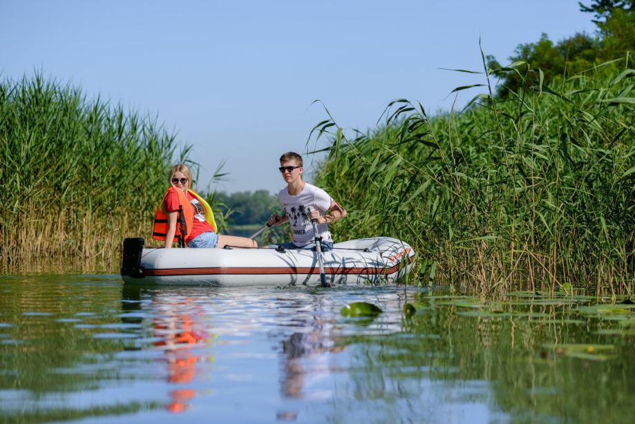STANDARDNA OPREMA: vesla, pumpa, set za popravak, torba za čamac i pod, vodilica sidra, ručke za transport, uzdužno sigurnosno uže, 2 komada uzdužno pomične klupice za sjedenje, samoregulirajući sigurnosni ventili..