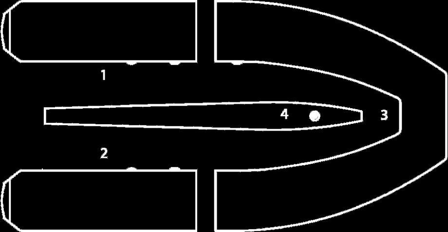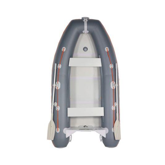 STANDARDNA OPREMA: vesla, pumpa, set za popravak, torba za čamac i pod, vodilica sidra, kobilica na napuhavanje, ručke za transport, uzdužno sigurnosno uže, 2 komada uzdužno pomične klupice za sjedenje, samoregulirajući sigurnosni ventili..