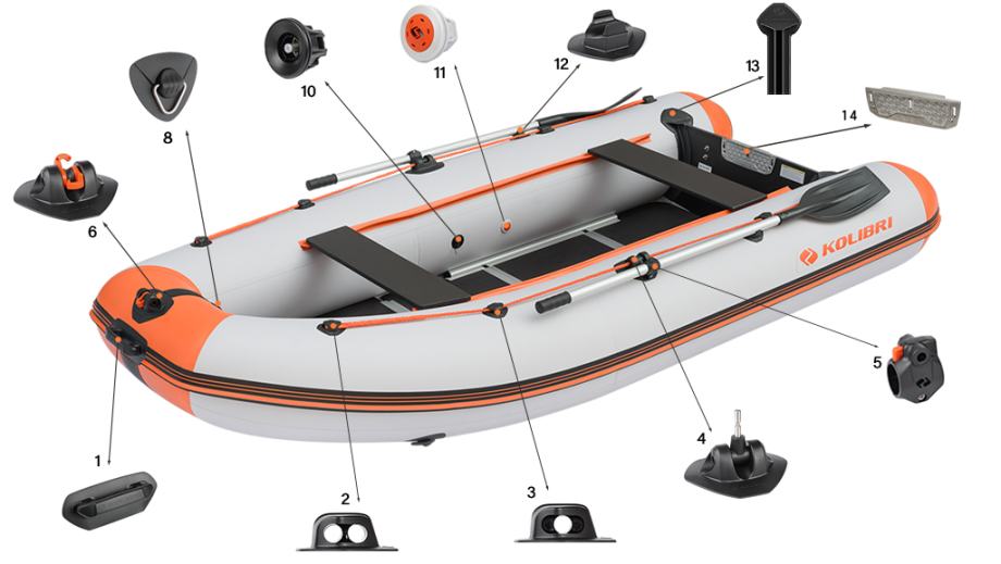 vesla, pumpa, set za popravak, torba za čamac i pod, vodilica sidra, ručke za transport, sigurnosne ručke, 2kom uzdužno pomične klupice za sjedenje, samoregulirajući sigurnosni ventili,kobilica na napuhavanje, bravo ventil...