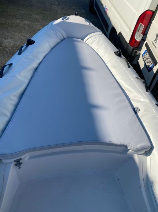 Gumenjak prodajem bez motora. Izrađen je u brodogradilištu pored Barija i namjenjen za otvoreno more. Ima magnum plastično dno i time lakše izglisirva s manjom snagom motora. Prednji kraj je izveden tako da ne šprica u unutrašnjost gumenjaka. Tubusi su od hipalona.Od opreme ima bimini,muziku,kaljužnu pumpu, tuš, nav svijetla... Jastuci napravljeni pošle godine. Mob 0953564095
