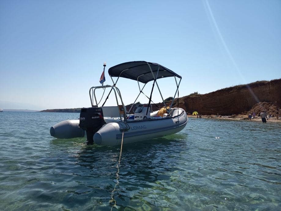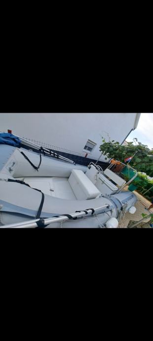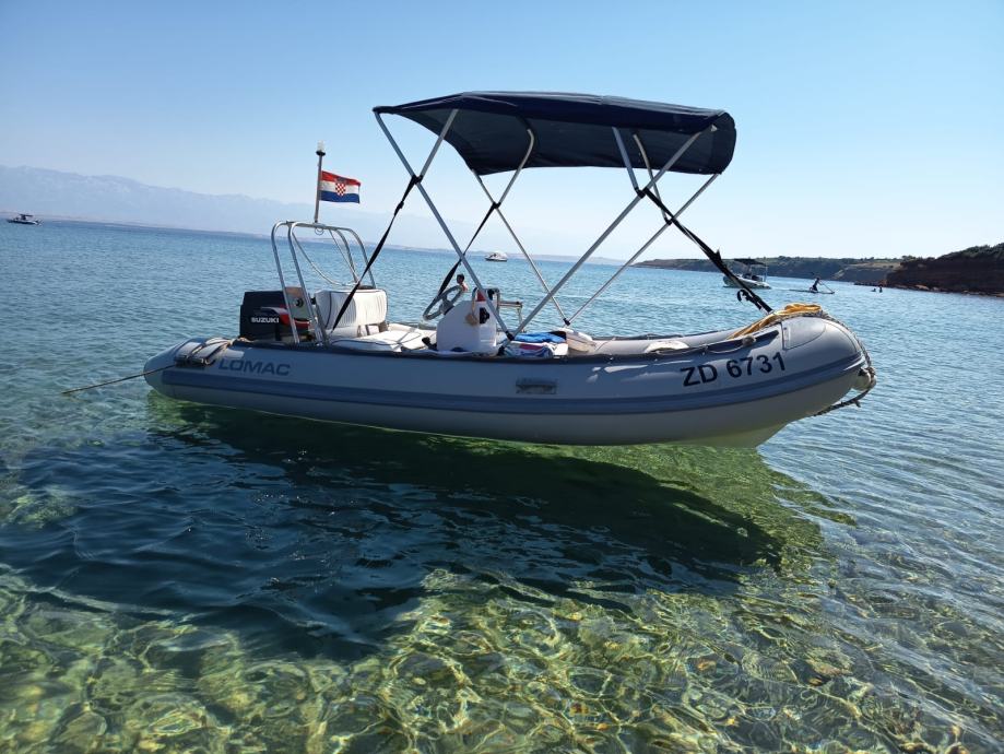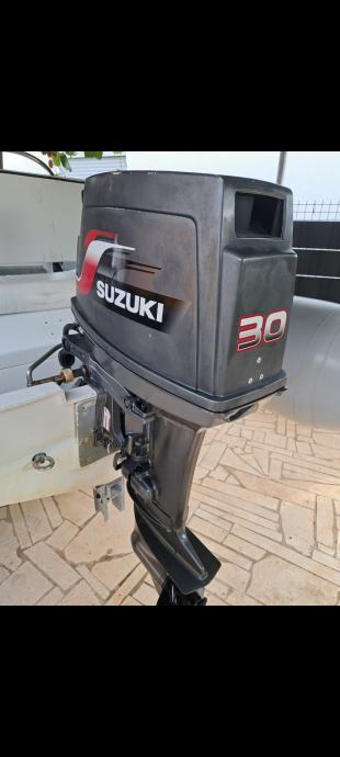 Lamac 430,mažen i pažen.Godišnje u moru 2 tjedna.Svake godine ispran slatkom vodom i servisiran.Motor Suzuki 30 ks sa 500 radnih sati.Gumenjak dolazi sa neregistriranom prikolicom.