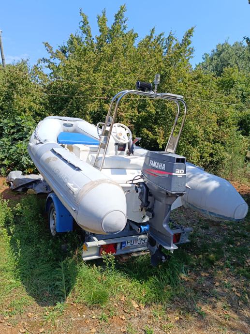 Možda je potrebno zamijeniti Command. Sajla gasa i mjenjača stara je godinu dana. Prednja komora gubi zrak. Nakon dva dana potrebno je dodati malo zraka. Nova instalacijska cijev, uključujući Hypalon i ljepilo, uključena je besplatno. Brod je na našem posjedu. Probne vožnje nisu dostupne. Motor se može pokrenuti.