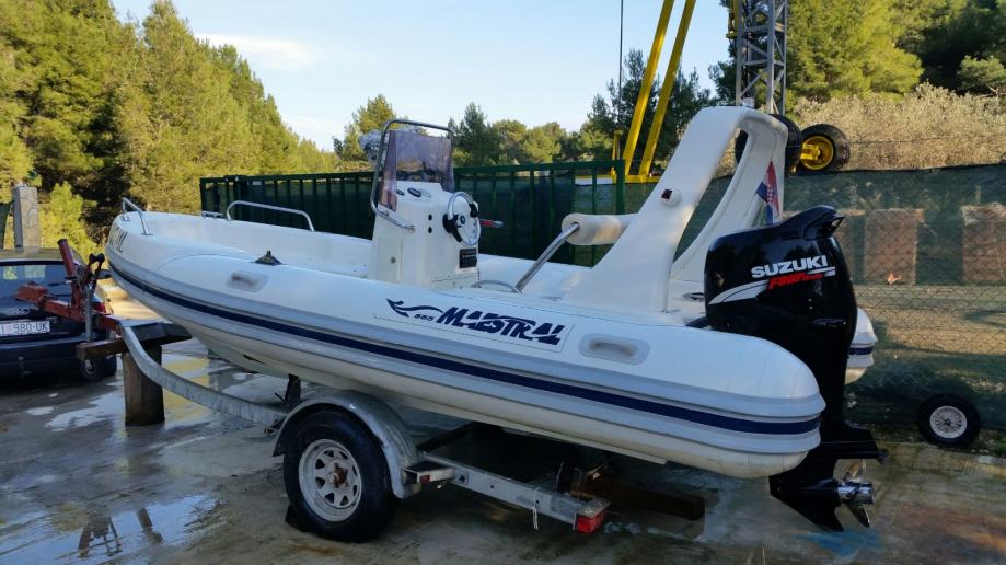 Prodajem maestral 5.55m, 2005god sirina 2.5m,odlicnih plovnih karakteristika u super stanju sa neregistriranom prikolicom, motor suzuki 140hp 4t 2005god.700h rada. Odlicno stanje.mogucnost prodaje samo gumenjaka.. Cijena nije fixna