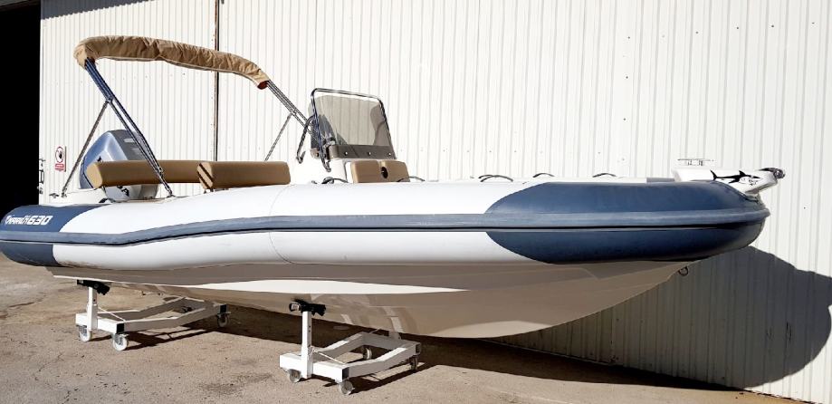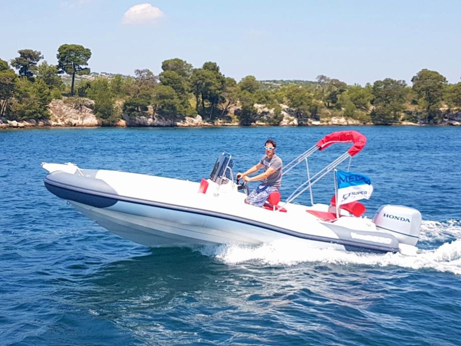 špirun, jastuci krme, sjedala te veliko pramčano sunčalište od konzole do špiruna, krmene platforme s inox stepenicama, inox spremnik goriva 120L, električni panel sa prekidačima, kompletni materijal za ugradnju motora i motor ugrađen na plovilo spreman za upotrebu.