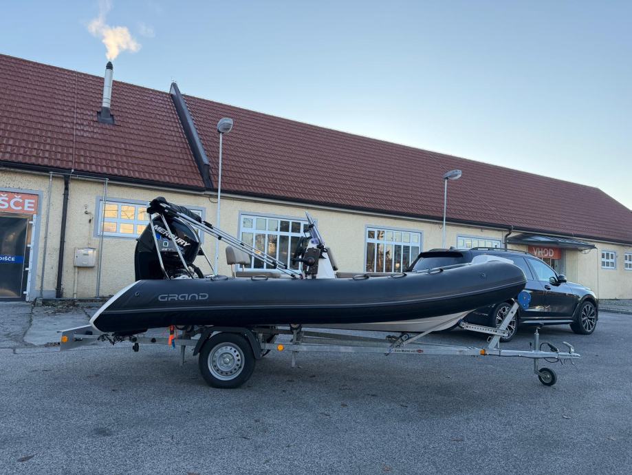 Na prodaju je izvrsno očuvan rabljeni gumeni čamac Grand S470, opremljen s vanbrodskim Mercury F60 SeaPro motorom, koji ima samo 59 radnih sati.