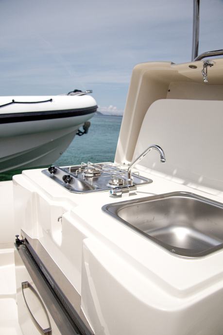 Jastuci na klupama i sjedalima, konzola od fiberglasa s kormilom, prozor, jedan unutarnji prostor za odlaganje, platforma od fiberglasa, skiperskoo sjedalo s jastukom, pramačana vodilica za sidro od nehrđajućeg čelika , ljestve od nehrđajućeg čelika, unutarnja kabina s WC-om, spremnik goriva, navigacijska svjetla, pumpa za kaljužu, prostor za odlaganje na krmi, prostori za odlaganje na pramcu, set za popravak, zračna pumpa.