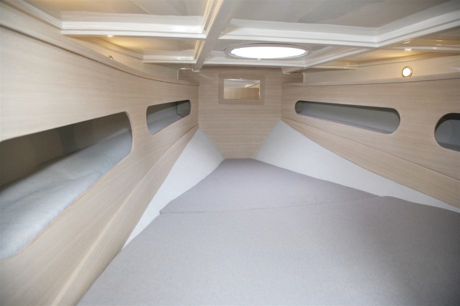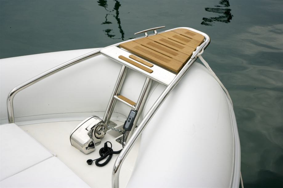 Jastuci na klupama i sjedalima, konzola od fiberglasa s kormilom, prozor, jedan unutarnji prostor za odlaganje, platforma od fiberglasa, skiperskoo sjedalo s jastukom, pramačana vodilica za sidro od nehrđajućeg čelika , ljestve od nehrđajućeg čelika, unutarnja kabina s WC-om, spremnik goriva, navigacijska svjetla, pumpa za kaljužu, prostor za odlaganje na krmi, prostori za odlaganje na pramcu, set za popravak, zračna pumpa, nosač za vanbrodsku verziju, električno vitlo, inox stanica za bokobrane, krmene bitve.