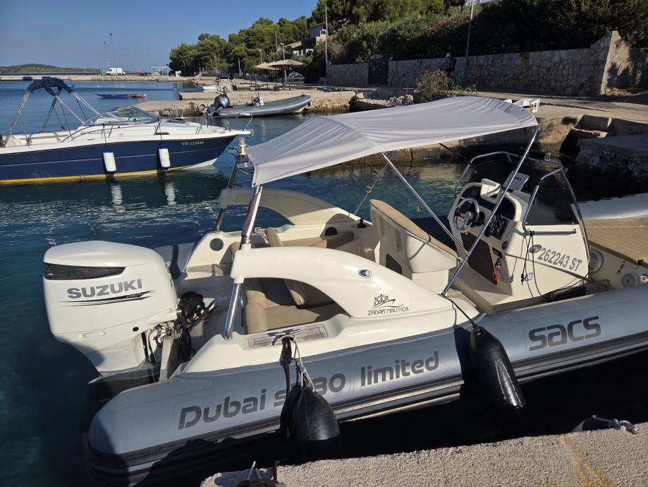 Novi tubusi orca hypalon military gray , novi tapecirunzi carbon look otporni na razne uvjete.... Simrad , flexi.teek , alpine marine souround 1200 w , novi bimini od yacht mastera , led bar 6000k, nav led rasvjeta , rezevar za gorivo 300 lit , rezervar za vodu 100 lit. tuš , novi sidreni winch ,Suzuki 300ks sa 150r/h , racing propela , putna brzina na 3800 rpm 27mph sa 20 osoba i prtljagom , uz plovilo dolazi troosovinska prikolica. Prodaja isključivo za gotovinu ,