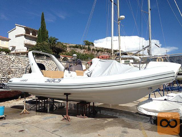 SERIJSKA OPREMA: konzola , volan , komplet jastuka , stolic, kompas, truba , svjetla za navigaciju , inox tank goriva 195 litara.