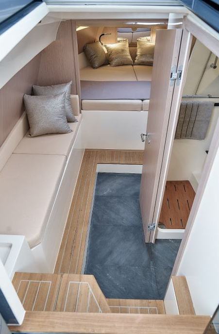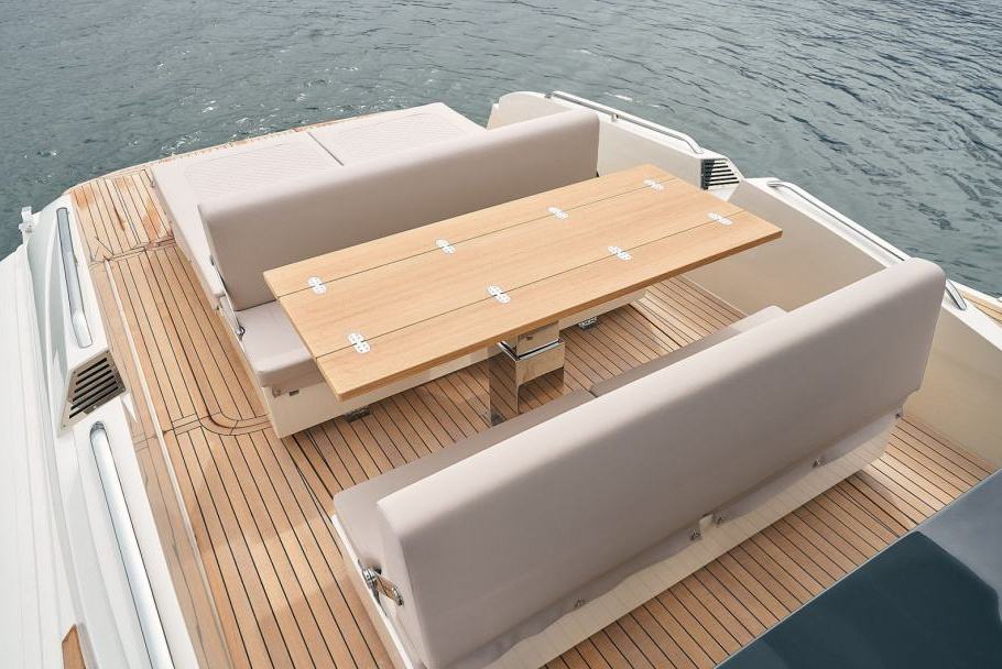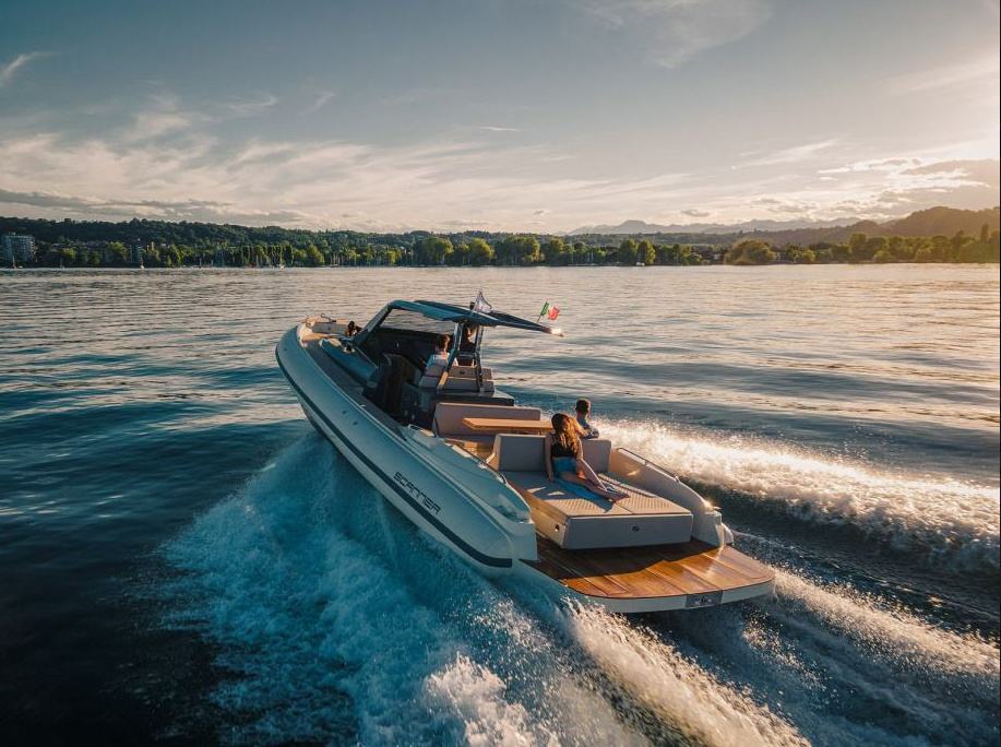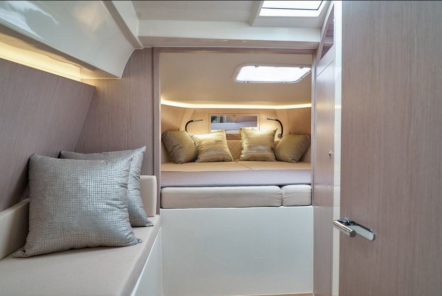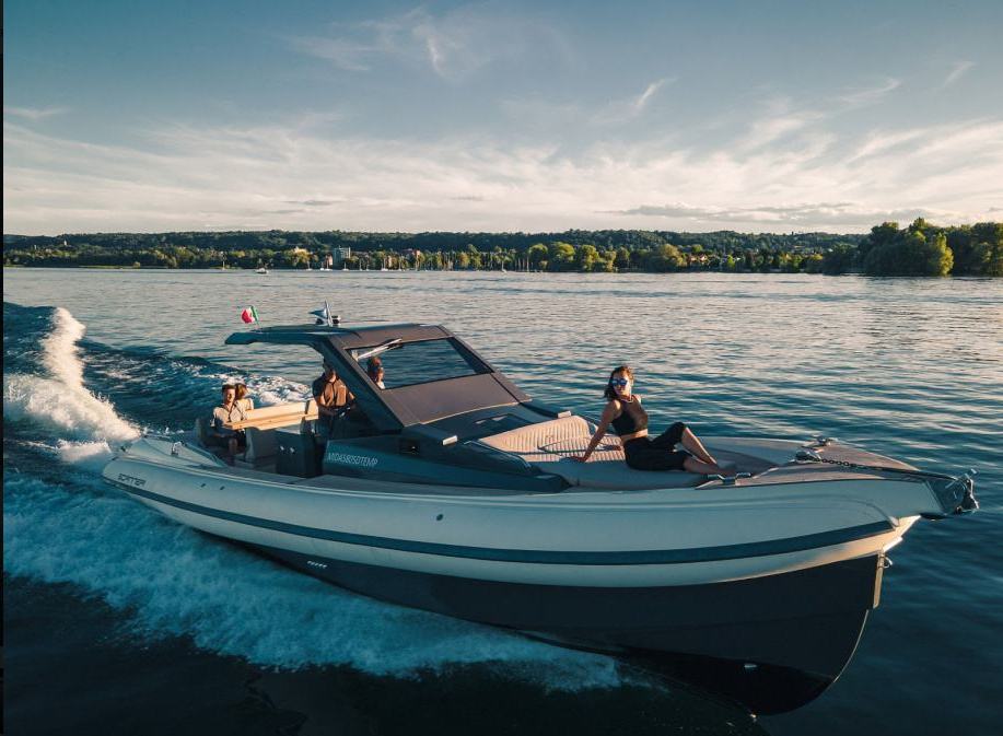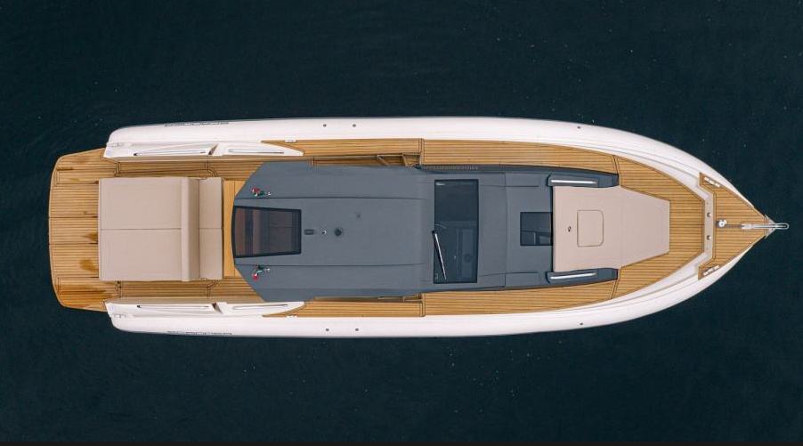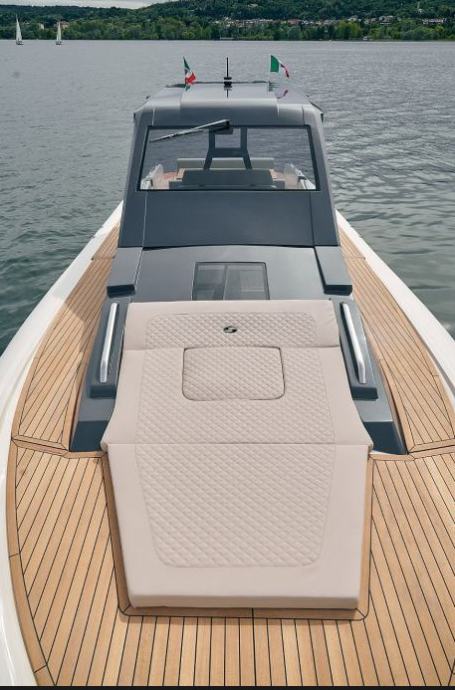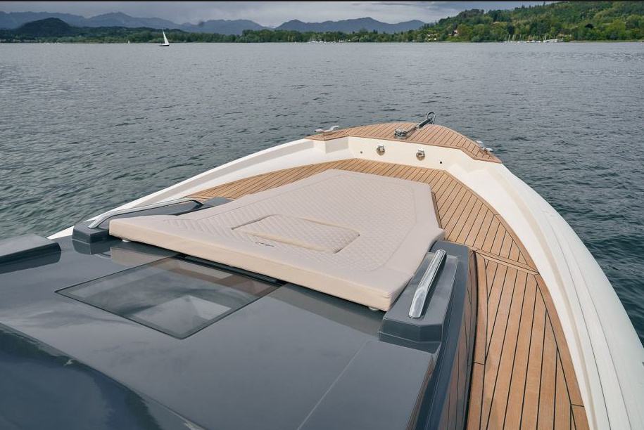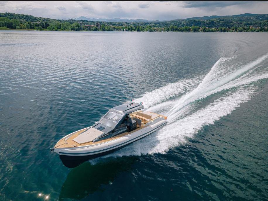 Iznimno čiste linije i njegovih 12 metara čistog stila čine ovaj gumenjak simbolom nesumnjivog šarma. Potraga za stilom u svakom detalju postiže ravnotežu i iznutra i izvana, dok izraženi pramac naglašava njegovu pripadnost moru. Mirne i nježne boje unutrašnjosti potiču opuštanje noću, također zahvaljujući prostranoj kabini s kupaonicom s tušem.