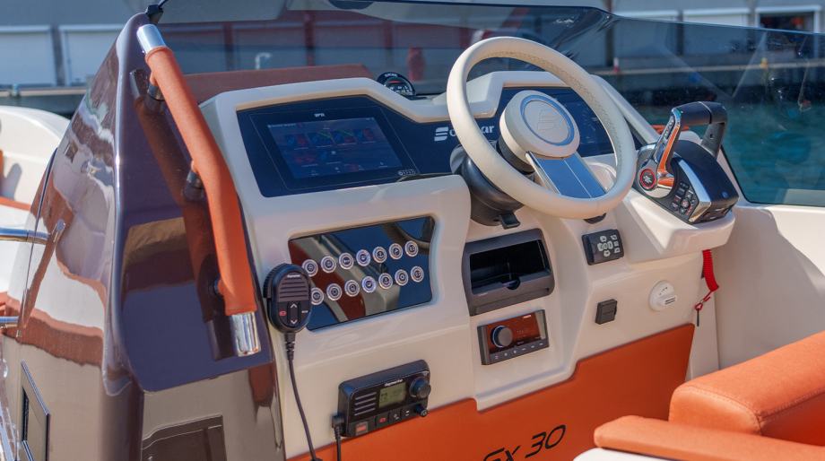 Glavne značajke SX30 je tipičan dnevni model: čiste linije stvaraju skladan ukupni dojam. Ovaj model također ima asimetrični dizajn marke, koji omogućuje jednostavan bočni prolaz i optimizira prostor na brodu. Potpuno obnovljena konzola je udobno organizirana. Prednje vjetrobransko staklo se proteže bočno na desnu stranu i služi i estetici, poboljšavajući model, i funkcionalnosti: pomaže vozaču da blokira vjetar.