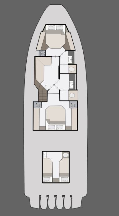 ispod palube s do 6+1 ležajem i 3 kupaonice za duga krstarenja, privatnost i udobnost stanovanja.