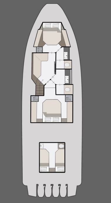 ispod palube s do 6+1 ležajem i 3 kupaonice za duga krstarenja, privatnost i udobnost stanovanja.
