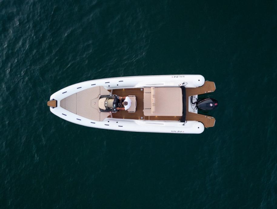 SPX Rib 24 dočekuje vas velikim pramcem i krmenom palubom za sunčanje, gdje se nalaze lako dostupni ormarići i puno prostora za pohranu. Sofisticirana i intuitivna upravljačka konzola može se pohvaliti bogatstvom instrumenata koji osiguravaju potpunu kontrolu nad plovilom.