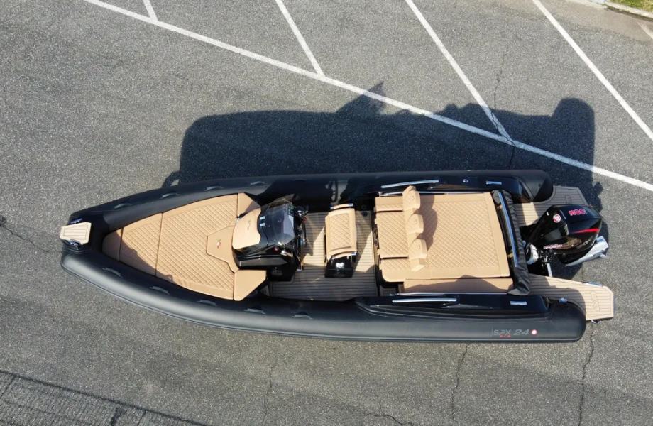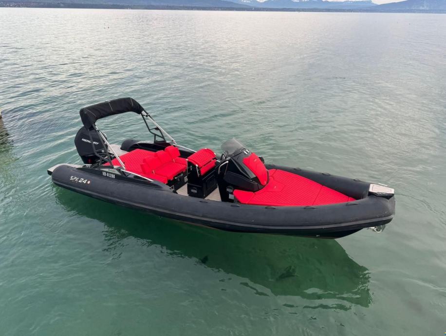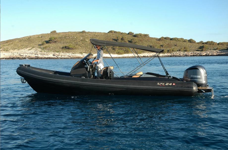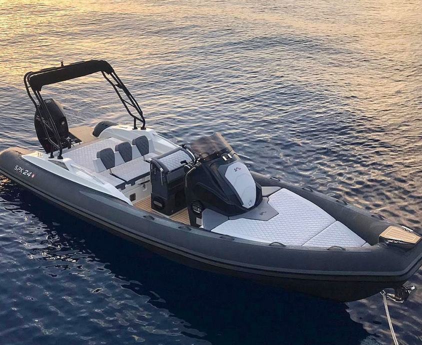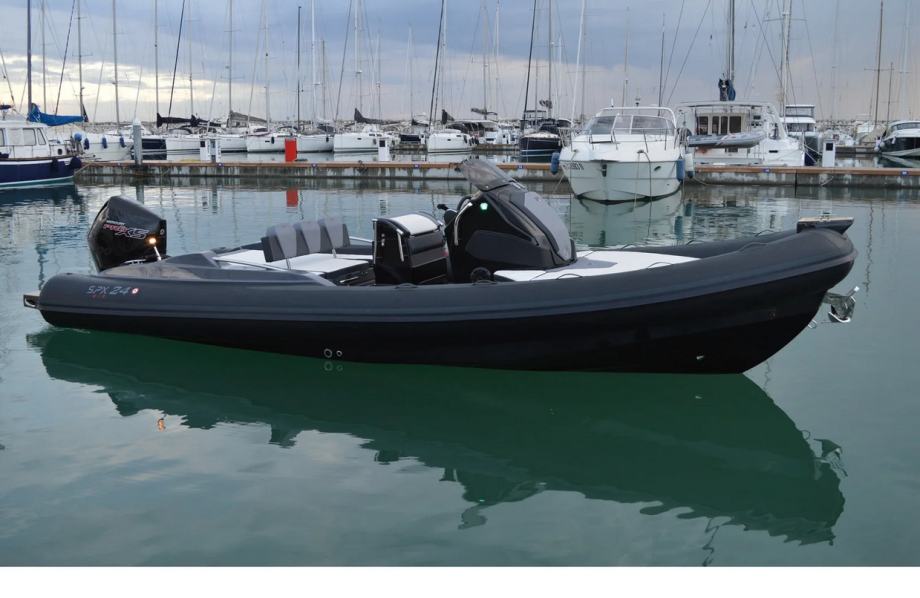 Zadovoljstvo izbora Model SPX Rib 24 ima čvrst, ali vrlo plovan trup. Stabilan, izuzetno brz i siguran, s najsnažnijim motorima postići će vas do 65 čvorova. S niskom potrošnjom goriva pri konstantnoj brzini, ovaj gumenjak udobno prima do 14 putnika.