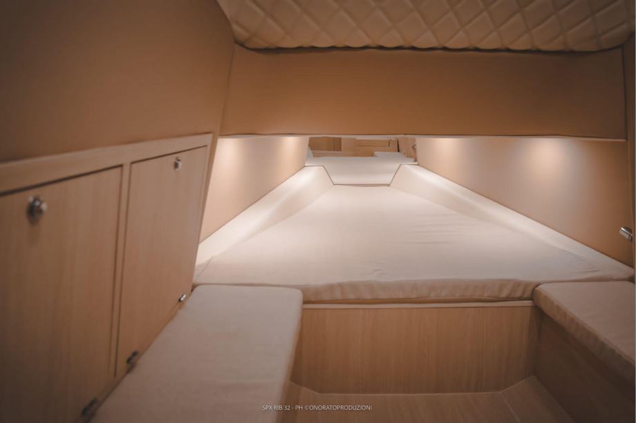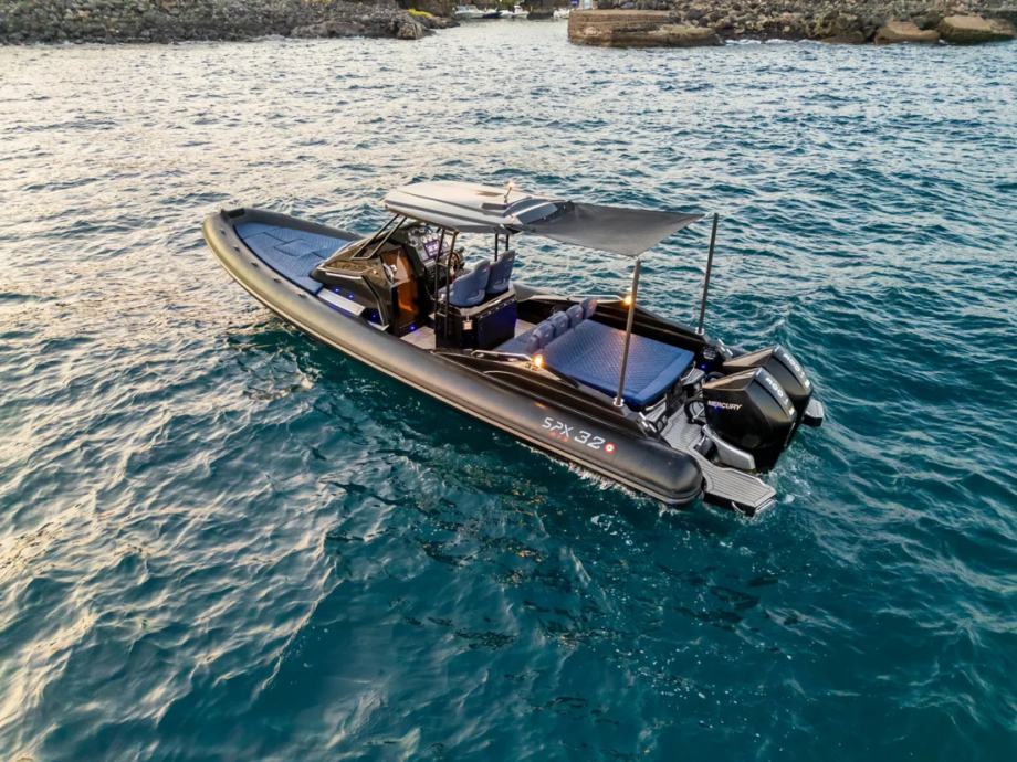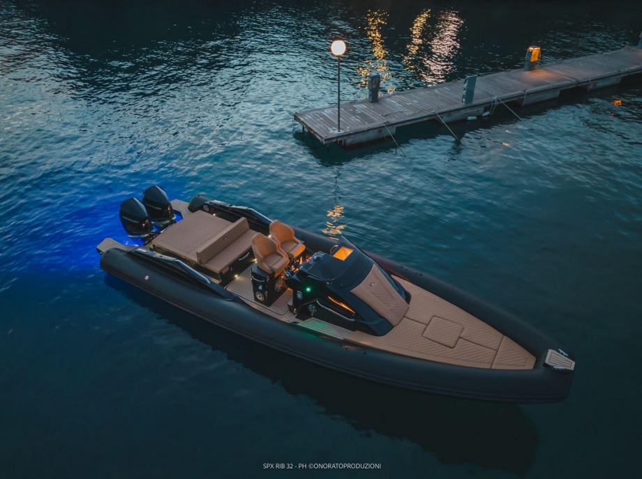 Spx Rib 32 je brod za višednevna putovanja koji ništa ne prepušta slučaju. Njegove elegantne i agresivne linije nude velike i udobne prostore te poboljšavaju učinkovitost broda, dizajniranog za pogon s dva motora od 450 KS, optimizirajući potrošnju goriva. Učinkovita i praktična središnja kuhinja, prostrana kabina s kupaonicom i opcija druge kabine čine ga idealnim izborom za one koji žele doživjeti more kao protagonist. Mogućnost prikolice i registracija plovila čine ga nevjerojatno jednostavnim za upravljanje. Izgrađen poput jahte, ali bez muke s rukovanjem, idealan je za uživanje u ljepoti jedrenja sa stilom.