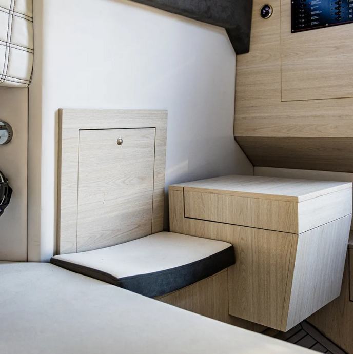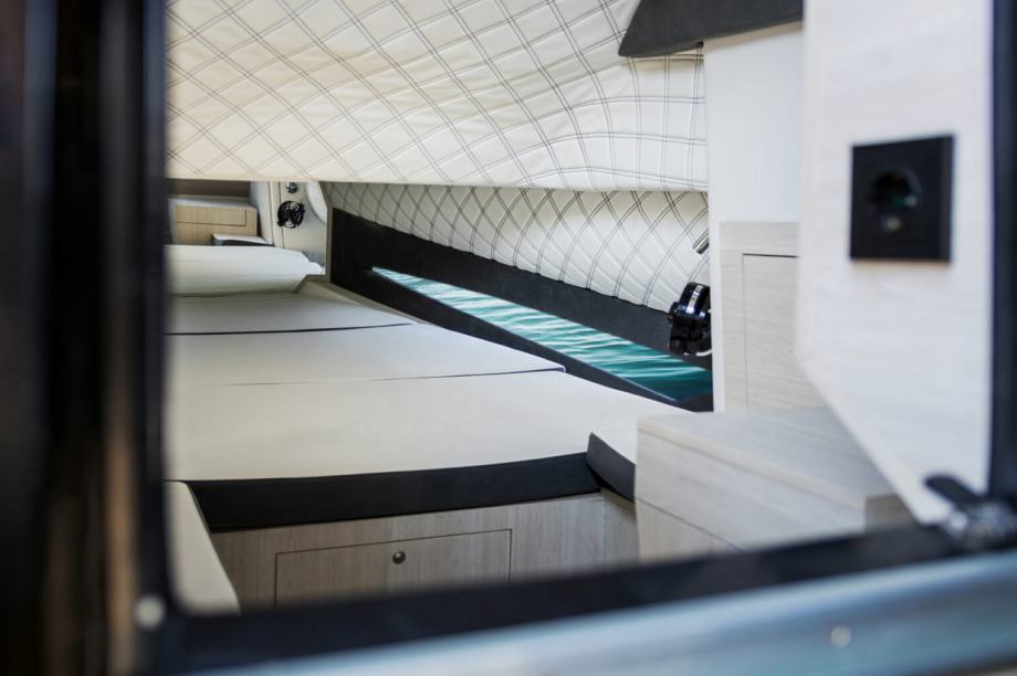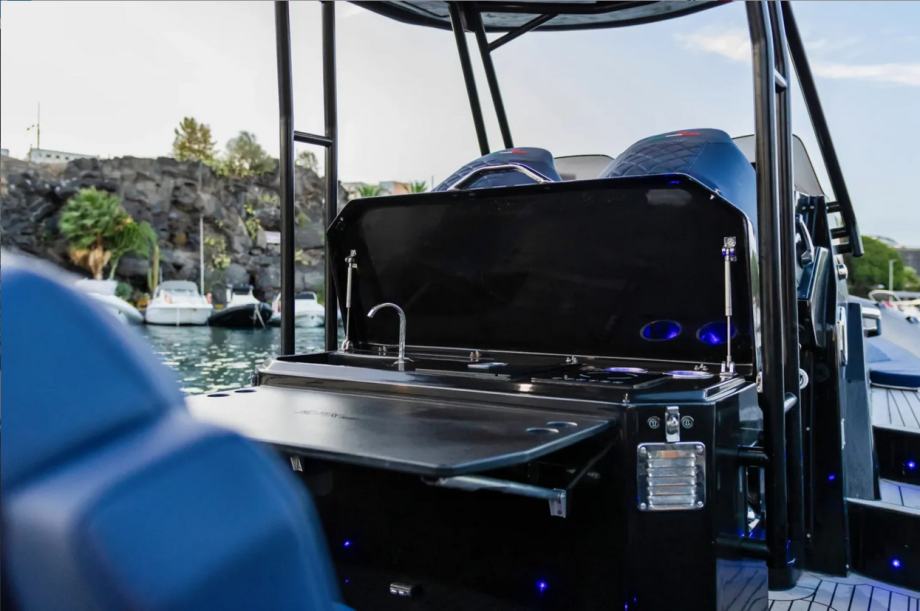 Agresivne linije ovog maxi RIB-a ostavljaju mjesta za više nego udobnu donju palubu. Prostrana kabina s dva ležaja i kupaonicom standardna je oprema. Svaki prostor je maksimalno iskorišten s policama, ormarićima, ladicama i ormarićima za prtljagu i opremu, osiguravajući odgovarajuću pohranu čak i tijekom višednevnih krstarenja. Druga kabina također se može stvoriti na krmi kako bi se udobno smjestila još dva gosta za noć. Nakon krstarenja punim gasom i uživanja u iznimnoj plovnosti, što može biti opuštajuće od noći promatranja zvijezda?