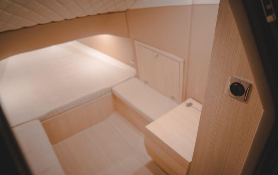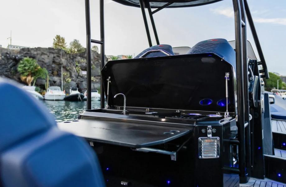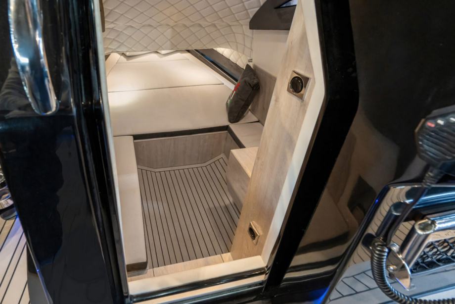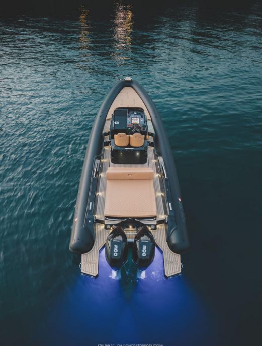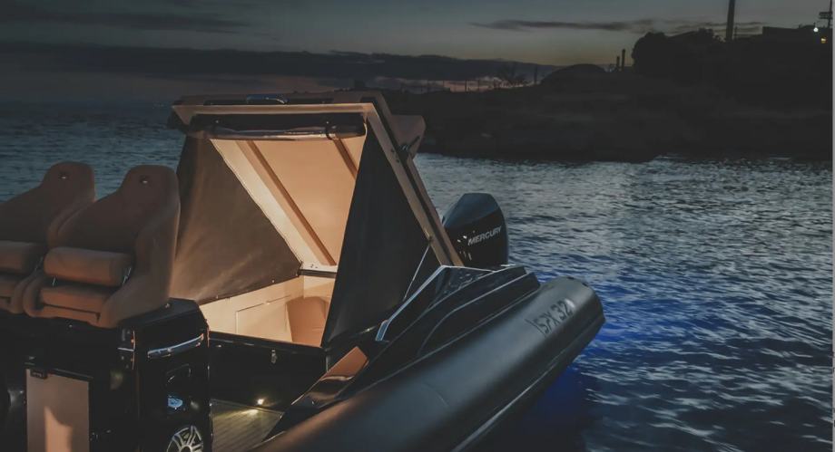 Agresivne linije ovog maxi RIB-a ostavljaju mjesta za više nego udobnu donju palubu. Prostrana kabina s dva ležaja i kupaonicom standardna je oprema. Svaki prostor je maksimalno iskorišten s policama, ormarićima, ladicama i ormarićima za prtljagu i opremu, osiguravajući odgovarajuću pohranu čak i tijekom višednevnih krstarenja. Druga kabina također se može stvoriti na krmi kako bi se udobno smjestila još dva gosta za noć. Nakon krstarenja punim gasom i uživanja u iznimnoj plovnosti, što može biti opuštajuće od noći promatranja zvijezda?