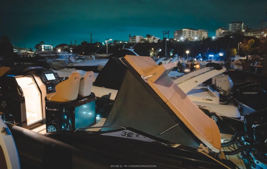 Spx Rib 32 je brod za višednevna putovanja koji ništa ne prepušta slučaju. Njegove elegantne i agresivne linije nude velike i udobne prostore te poboljšavaju učinkovitost broda, dizajniranog za pogon s dva motora od 450 KS, optimizirajući potrošnju goriva. Učinkovita i praktična središnja kuhinja, prostrana kabina s kupaonicom i opcija druge kabine čine ga idealnim izborom za one koji žele doživjeti more kao protagonist. Mogućnost prikolice i registracija plovila čine ga nevjerojatno jednostavnim za upravljanje. Izgrađen poput jahte, ali bez muke s rukovanjem, idealan je za uživanje u ljepoti jedrenja sa stilom.