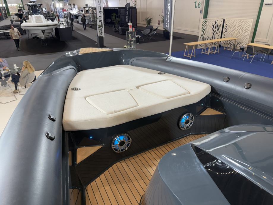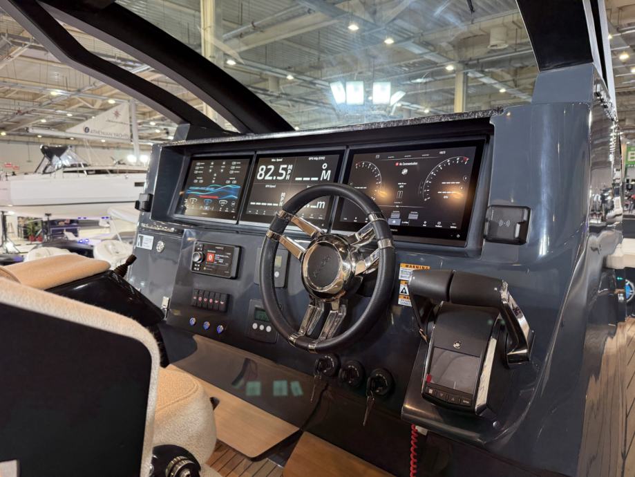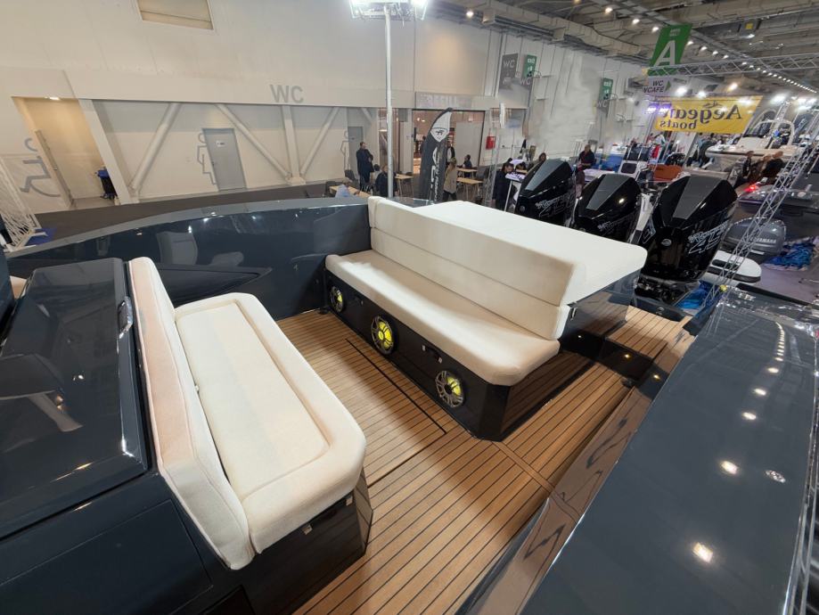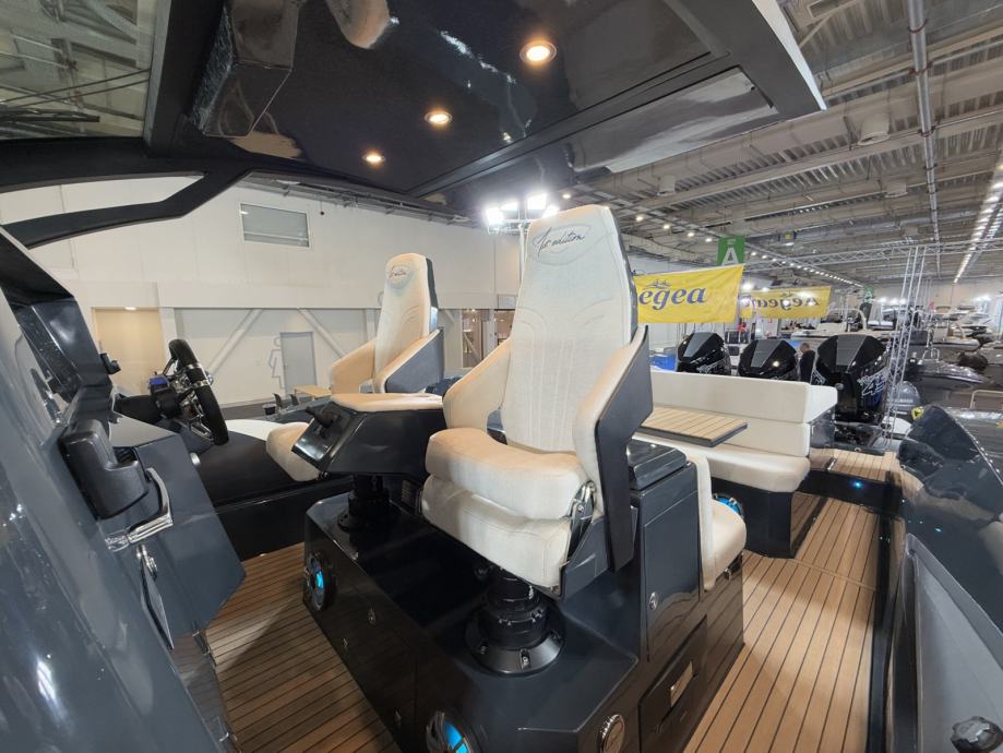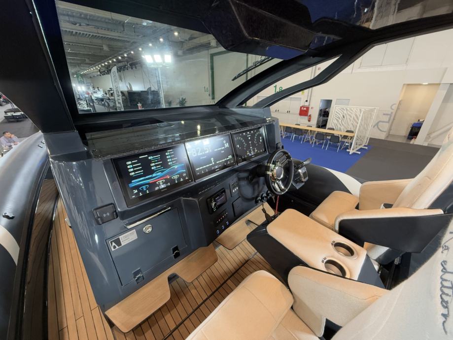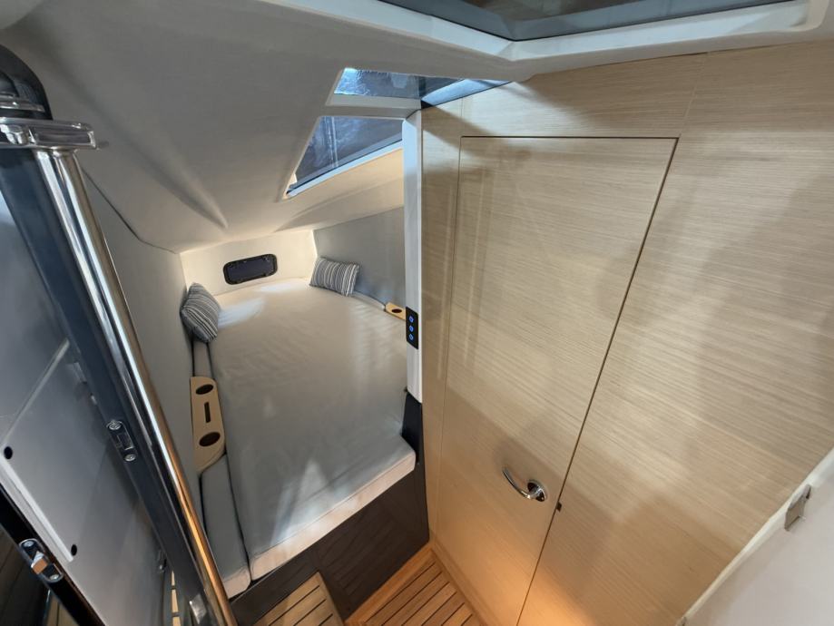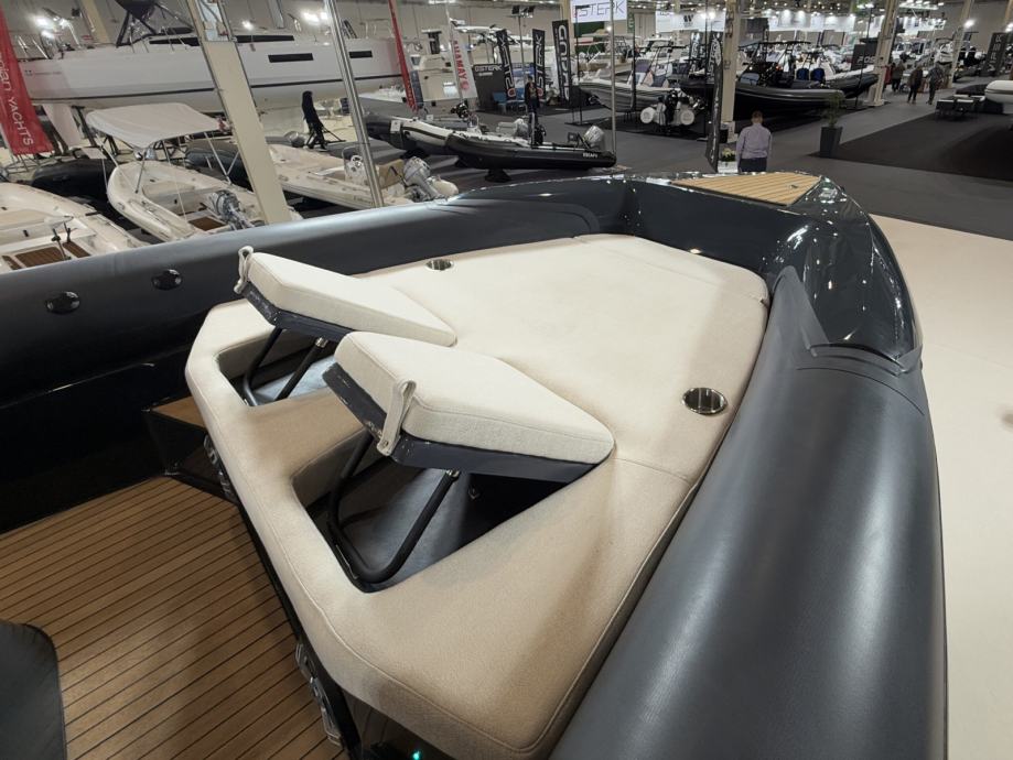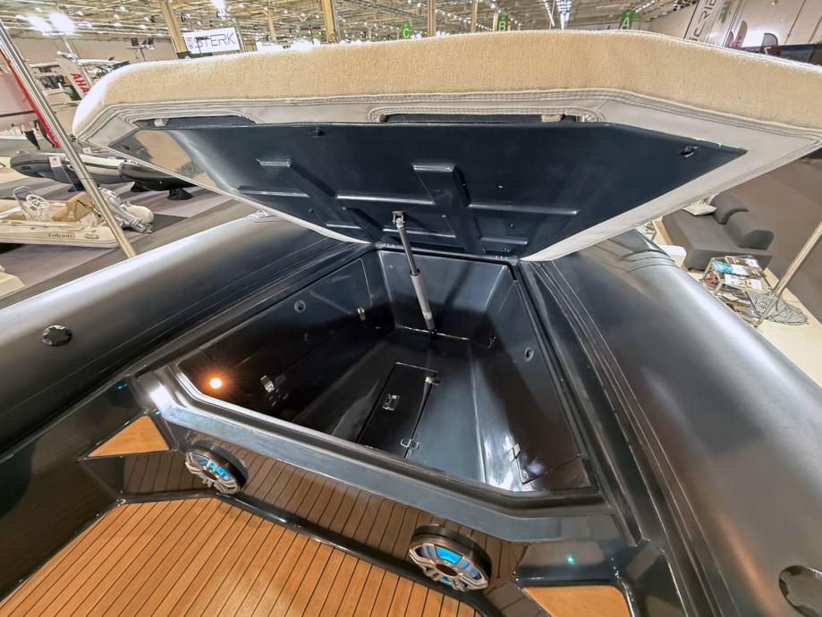 Brod ima mokri bar sa sudoperom i pločom za kuhanje, električni hladnjak, sklopivi stol, sunčanu terasu na pramcu, skriveno vitlo na pramcu i krmi te inovativnu električnu pramčanu pasarellu koja omogućuje jednostavan ulaz i izlaz iz broda.